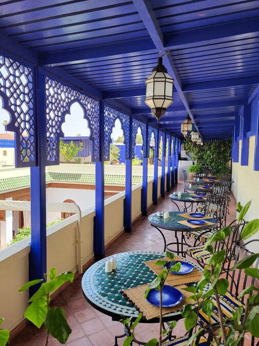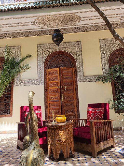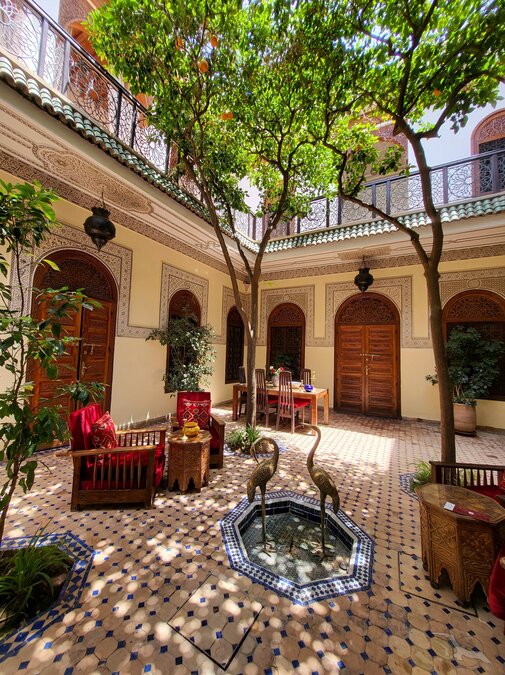 Die Riads liegen meist abseits der belebten Straßen, unscheinbar hinter hohen Mauern, in den engen Gassen der Medina. Die bunten Märkte und lebhaften Plätze der Altstadt sind zu Fuß gut erreichbar. Optimaler Ausgangspunkt für eigene Erkundungen in der faszinierenden, orientalischen Metropole mit dem großen Kultur- und Unterhaltungsangebot.