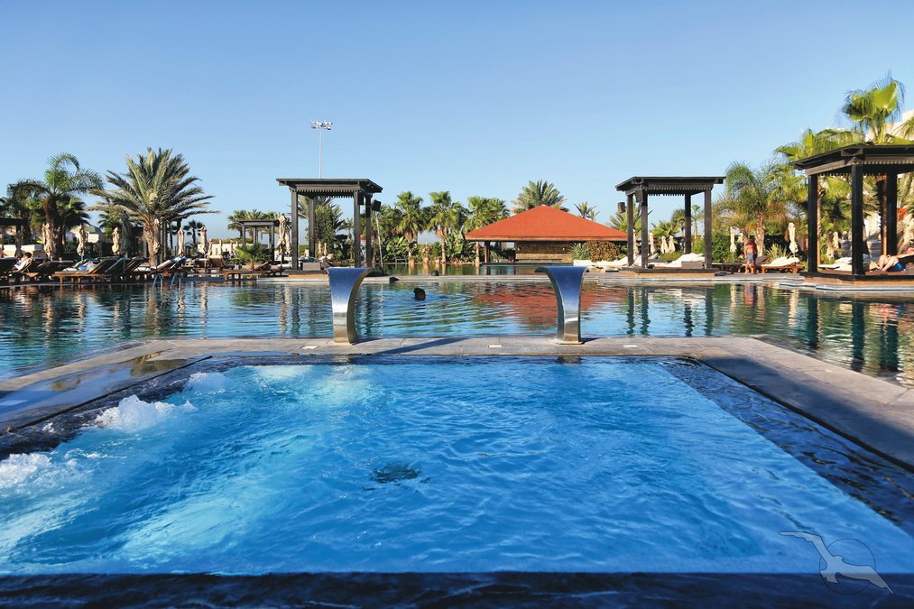 Die großzügig konzipierte Hotelanlage auf 4 Ebenen bietet eine Empfangshalle mit Rezeption und Lobbybar sowie WLAN (in der gesamten Anlage inklusive). Für das leibliche Wohl sorgen Hauptrestaurant mit Außenterrasse, Themenrestaurants (marokkanisch, Fusionsküche, italienisch) und 4 Bars. Weiterhin bietet das Hotel ein Spa, Hallenbad (beheizbar), Friseur und eine Boutique. In der schönen Gartenanlage befindet sich die Swimmingpoollandschaft mit separatem Kinderbecken, Meerwasserpool, Sonnenterrasse und eine Snackbar. Liegen, Sonnenschirme und Badetücher sind an Pool und Strand inklusive.