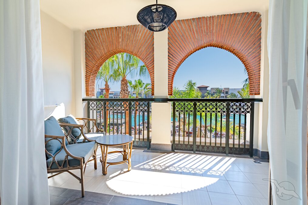 Doppelzimmer (DZ/DZE) Elegant und geräumig (ca. 45 m²), mit Klimaanlage, Dusche/WC, Föhn, Sofa, Telefon, SAT-TV, Mini- Kühlschrank, Safe und Balkon oder Terrasse. Wahlweise mit Poolblick (DZP/DEP) buchbar.