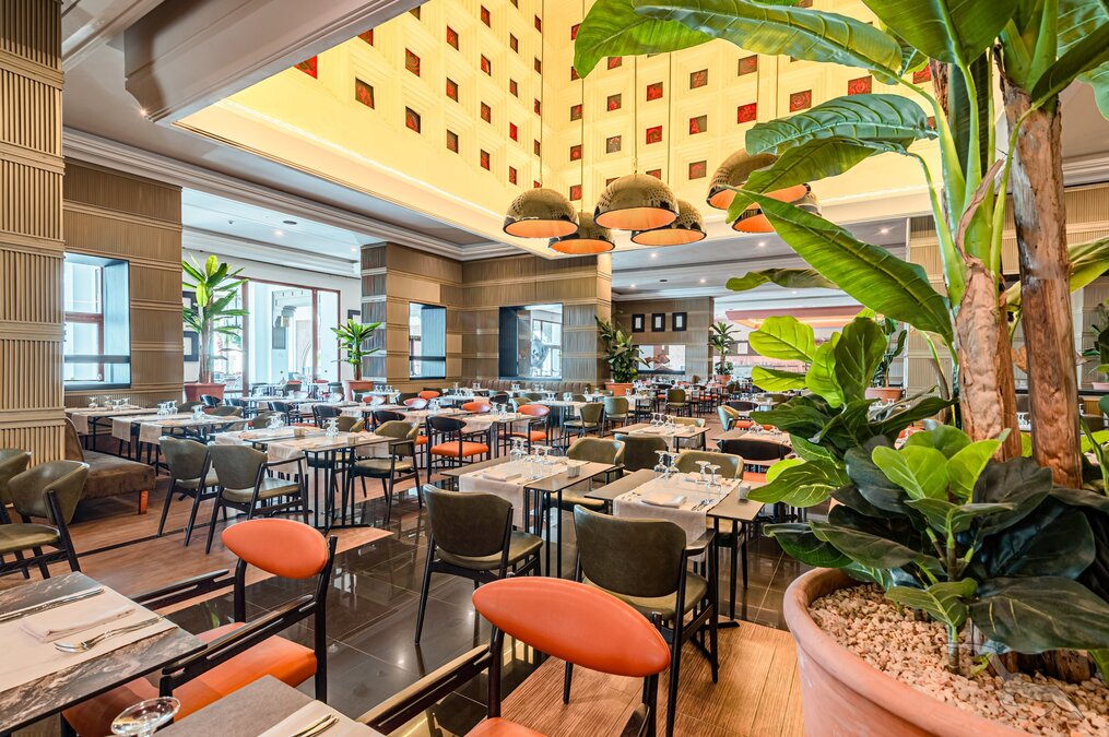 All inclusive: Frühstück-, Mittag- und Abendessen in Buffetform mit "Show cooking" im Hauptrestaurant. Langschläferfrühstück bis 12 Uhr, Themenabende, Abendessen wahlweise in den à la carte Restaurants oder im italienischen Themenrestaurant (Reservierung erforderlich), tagsüber Snacks an der Poolbar, nachmittags Kaffee, Tee und Kuchen. Lokale alkoholische und alkoholfreie Getränke rund um die Uhr. Tägliche Auffüllung der Minibar mit Softdrinks.