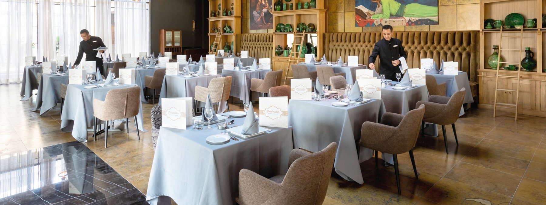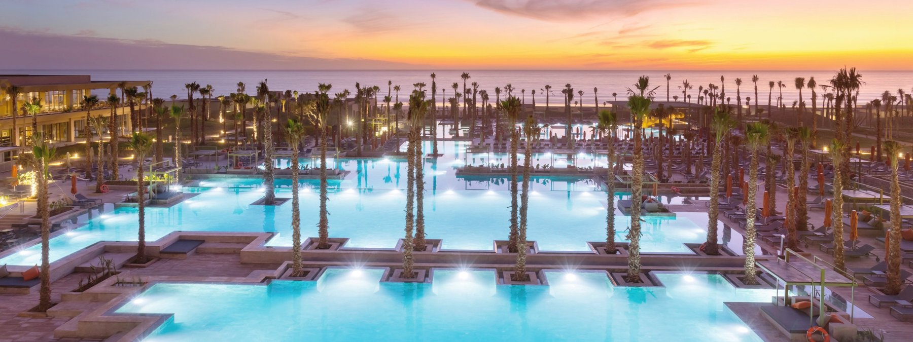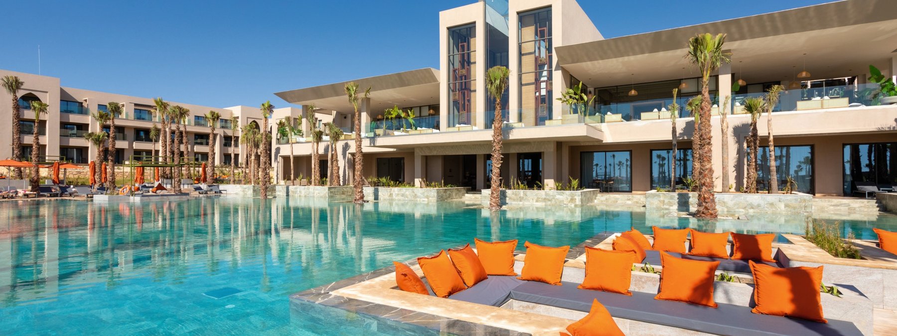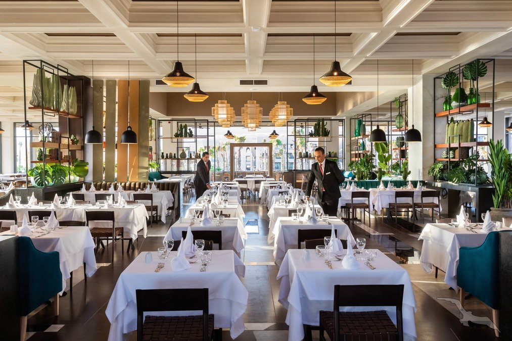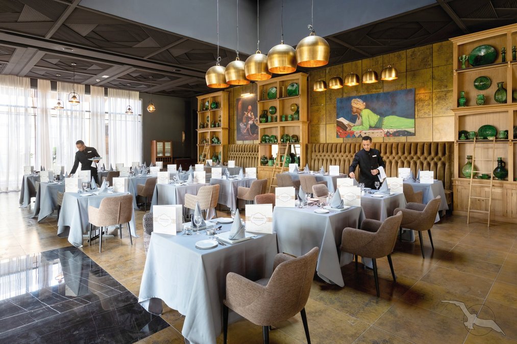 Die neue und moderne Hotelanlage bietet seinen Gästen eine Empfangshalle mit Rezeption und Lobbybar sowie WLAN (in der gesamten Anlage inklusive). Für das leibliche Wohl sorgen das Hauptrestaurant , 3 à la carte Restaurants (marokkanisch, Fusionsküche, Steakhaus) und insgesamt 7 Bars. Weiterhin bietet das Hotel ein Spa, Hallenbad (beheizbar), Friseur und eine Boutique. In der schönen Gartenanlage befinden sich 5 Swimmingpools (einer beheizbar), 2 Infinity-Pools und ein separates Kinderbecken, Sonnenterrasse und eine Poolbar. Liegen, Sonnenschirme und Badetücher sind an Pool und Strand inklusive.