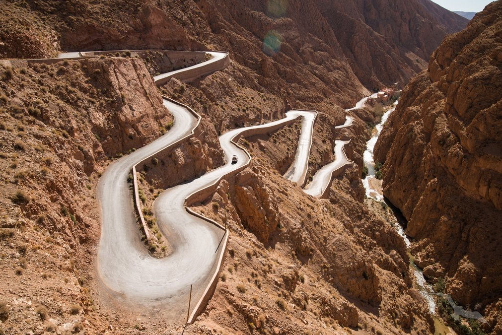 Heute fahren Sie weiter über die Straße der Kasbahs zu den typischen Wohnburgen und alten Wehrdörfern, die zu beiden Seiten des wildromantischen Dades-Tal zu finden sind. Unterwegs besuchen Sie die Todra-Schlucht mit ihren spektakulären Felshängen. Auf dem Weg nach Ouarzazate bildet der schneebedeckte Hohe Atlas das einmalige Hintergrundpanorama im Kontrast zu den Oasen der Wüste.