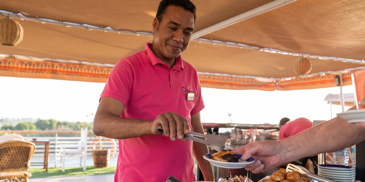 Vollpension: Frühstück, Mittag- und Abendessen. Die Hauptmahlzeiten werden Ihnen in Buffetform serviert. Je Reise organisiert die Schiffscrew ein orientalisches Abendessen oder einen Grillabend an Deck. Nachmittags Tee-/Kaffeestunde auf dem Sonnendeck mit Gebäck.