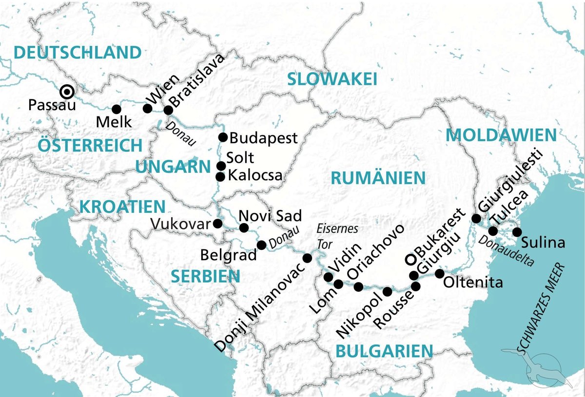 Passau - Wien - Budapest - Belgrad - Donaudelta - Rousse - "Eisernes Tor" - Kalocsa - Bratislava - Melk - Passau