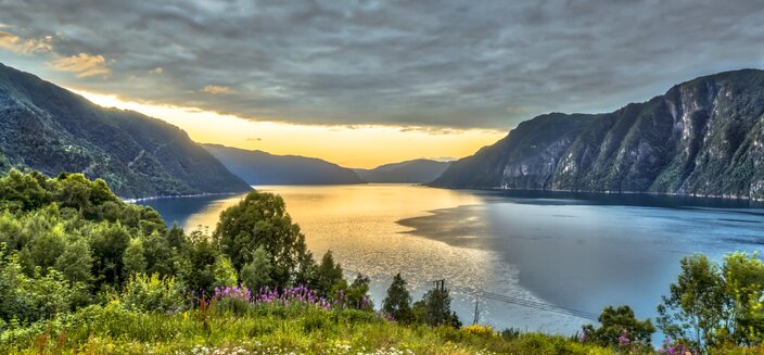 Die Fahrt beginnt in Molde, die als "Stadt der Rosen" bekannt ist. Nach einer kleinen Rundfahrt überqueren Sie den Moldefjord mit der Fähre nach Vestnes. Sie fahren durch schöne Landschaft über das Ørskoggebirge nach Stordal. Dort haben Sie Gelegenheit zum Besuch der achteckigen Holzkirche von 1799, die aufgrund der reichen Verzierungen auch "Rosenkirche" genannt wird: Wände, Säulen, Dach, Galerie und Kanzel sind mit Rosen, Akanthusranken und biblischen Szenen verziert. Durch das Valldal fahren Sie in Richtung Trollstigen mit kurzer Fotopause an der tiefen Gudbrandsschlucht. Mittagessen in einem Restaurant unterwegs. Die Passage des Trollstigheimen bietet einen schönen Panoramablick über die Bergwelt. Von einem Aussichtspunkt aus Gelegenheit, Fotos von der berühmten Trollstigstraße zu machen. Anschließend fahren Sie über die 11 Serpentinen in das Tal hinunter. Sie erreichen die berüchtigte Trollwand, die höchste Steilwand Europas mit senkrechten Abstürzen von mehr als 1.000 m. Nach einem Fotostopp fahren Sie nach Åndalsnes, wo Ihr Schiff in der Zwischenzeit eingetroffen ist.