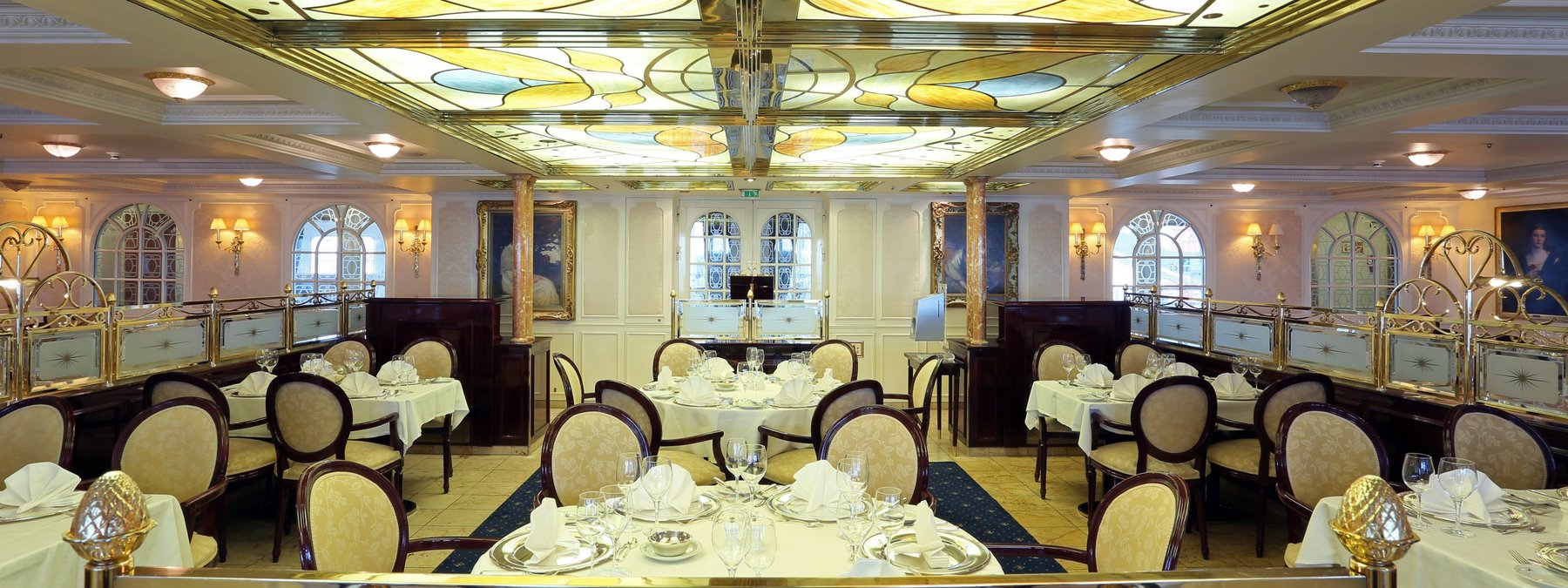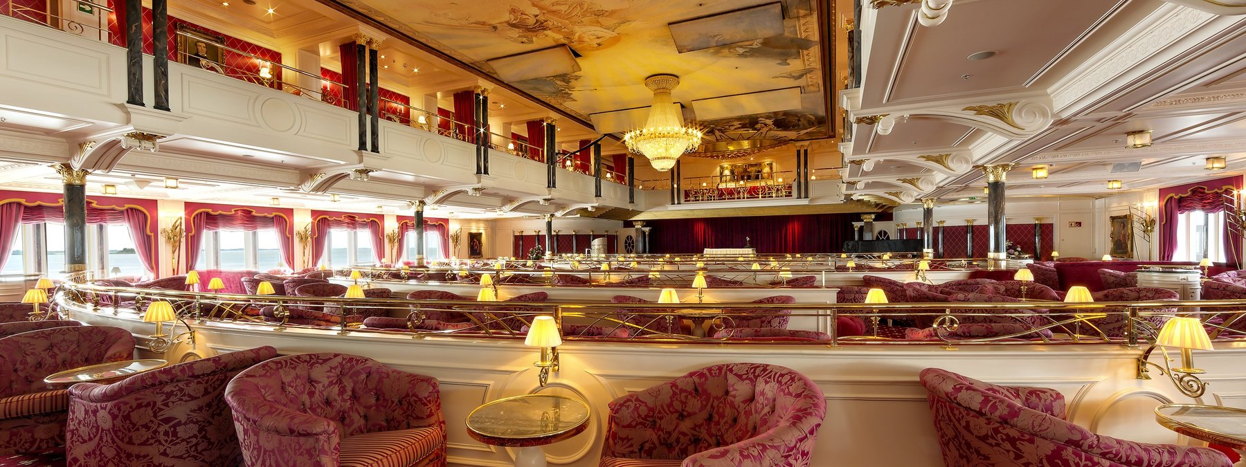 Auf sieben Passagierdecks mit liebevoll gestalteten und detaillierten Elementen der architektonischen Stilrichtungen Klassizismus, Jugendstil und Art Déco fühlt der Gast sich wohl. In den Restaurants und Bars fällt das Genießen und Entspannen leicht, die Atmosphäre ist einladend, der Service hervorragend und die kulinarischen Köstlichkeiten abwechslungsreich.