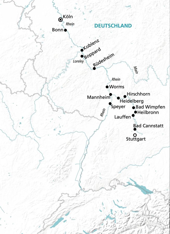 Der Neckar schlängelt sich durch eine naturbelassene, atemberaubend schöne Landschaft, vorbei an historischen Stätten und malerischen Burg- und Berggeländen. Bereits in frühen Jahren war der Neckar Dreh- und Angelpunkt für Schifffahrt und Handel und zählt auch heutzutage noch zu den wichtigsten Routen für Binnenschiffe. Die vielen großen und sehenswerten Städte, die die Ufer des Neckars säumen, gehören auf dem Programm einer Flusskreuzfahrt nach ganz oben. Heidelberg, Mannheim, Heilbronn und Stuttgart sind definitiv einen Besuch wert.