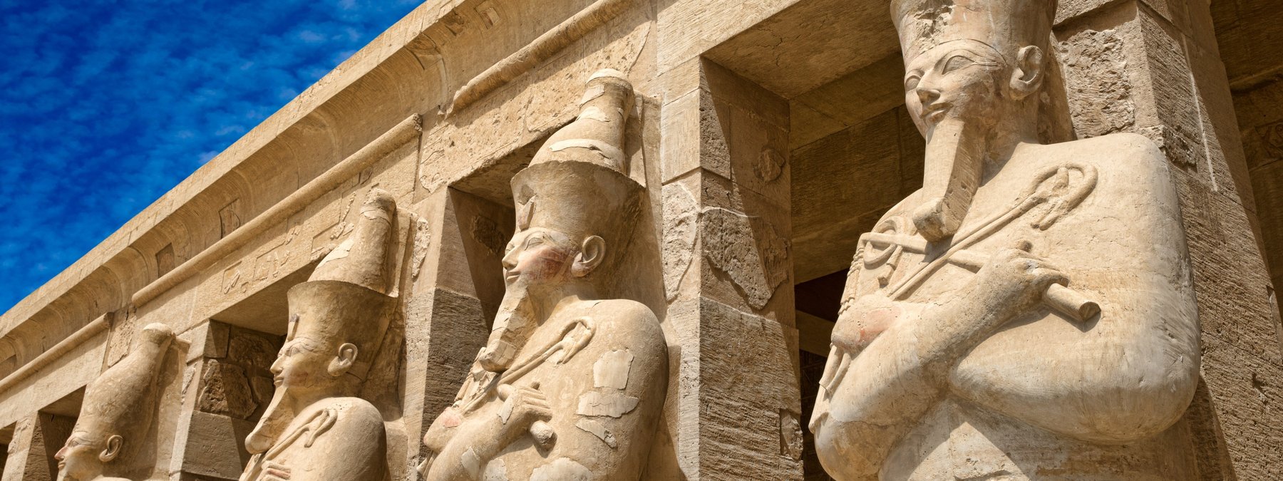 Nach dem Frühstück fahren Sie heute zunächst auf die gegenüberliegende Uferseite des Nils nach Theben West. Im berühmten Tal der Könige, das mit der Entdeckung des Tutanchamun-Grabes durch Howard Carter im Jahre 1922 Weltruhm erlangte, besuchen Sie einige der reich verzierten Pharaonengräber von innen. Anschließend besichtigen Sie den Totentempel der Hatschepsut und sehen die gewaltigen Memnon-Kolosse. Am Nachmittag legt Ihr Schiff ab und nimmt Kurs stromaufwärts in Richtung Esna. Sie erholen sich auf dem Sonnendeck, während die wunderschöne Nillandschaft an Ihnen vorbeizieht.