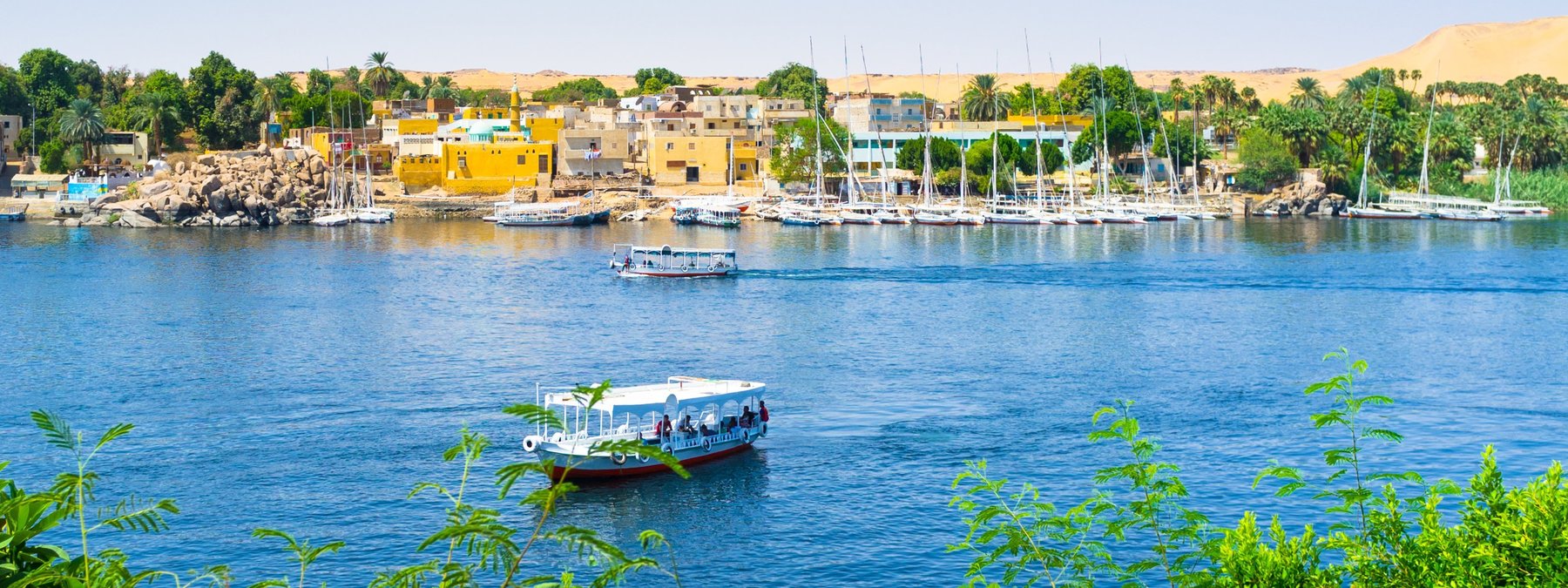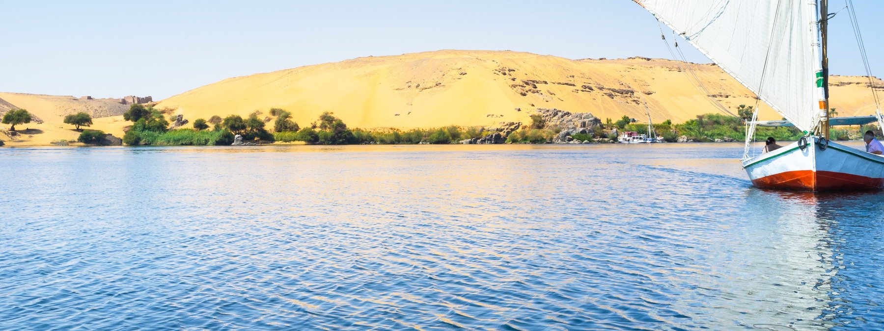 Mit einer traditionellen Segelfeluke (bei Windstille Motorboot) brechen Sie heute auf, um die herrliche Insellandschaft Assuans zu erkunden. Zunächst geht es zur Insel Elephantine, wo sich Spuren prähistorischer Zeit finden. Der Setat-Tempel gibt Auskunft zu den Anfängen der Besiedlung durch die alten Ägypter und zur frühen Entwicklung der Stadt. Anschließend fahren Sie auf die Lord-Kitchener-Insel, wo sich Ihnen der Botanische Garten präsentiert. Danach machen Sie mit Ihrem Boot an einer kleinen Insel Halt, um zum Mittagessen im nubischen Restaurant landestypische Spezialitäten zu kosten. Anschließend sehen Sie in einem kleinen Steinbruch moderne Exponate einheimischer Künstler und genießen die Fahrt durch das wunderschöne Naturreservat am Nilkatarakt, um zum Nubischen Dorf zu gelangen. Pünktlich vor dem Sonnenuntergang kehren Sie zur Teestunde an exponierter Stelle oberhalb des Nilkatarakts in den Garten einer Hotelanlage ein, um die einzigartige Atmosphäre mit ganz besonderer Aussicht zu genießen (vorzugsweise Gartenanlage Hotel Old Cataract bzw. im Ausnahmefall Hotel Basma).