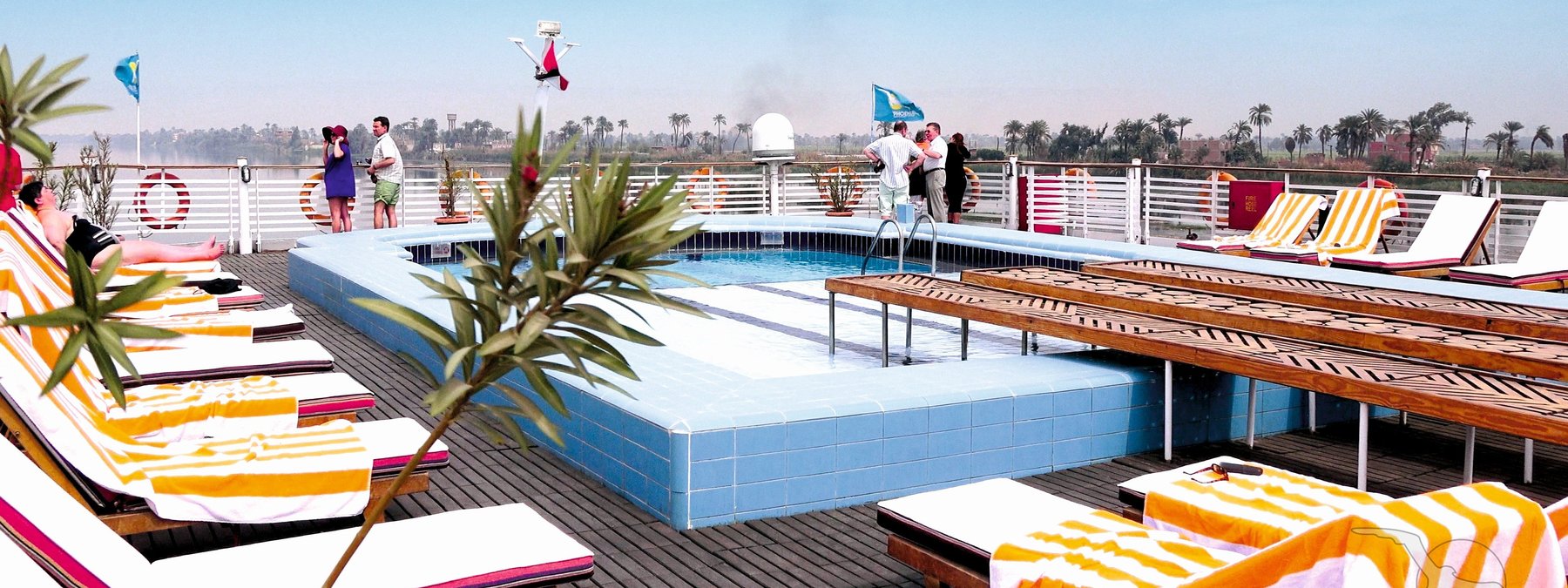 Luxor und Assuan an der Nilpromenade und in Kairo im Stadtteil Maadi. Je nach Aufkommen kann es an den Anlegestellen dazu kommen, dass mehrere Nilschiffe nebeneinander liegen, sodass die Sicht behindert sein kann und Geräusche/Gerüche von Nachbarschiffen nicht ausgeschlossen sind.