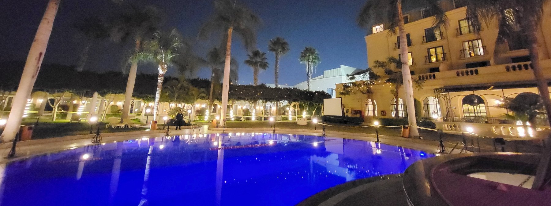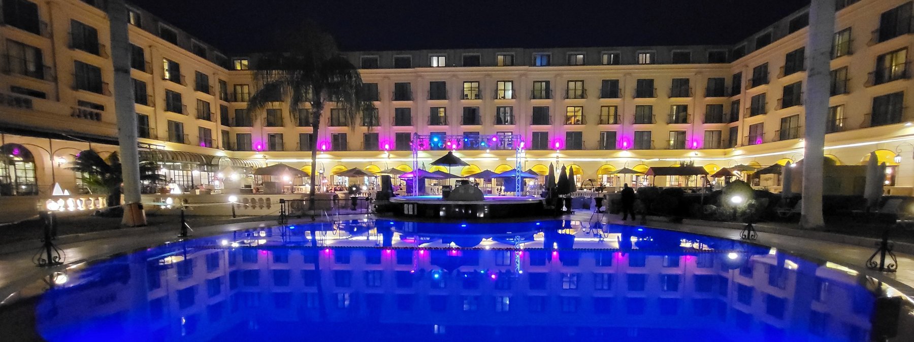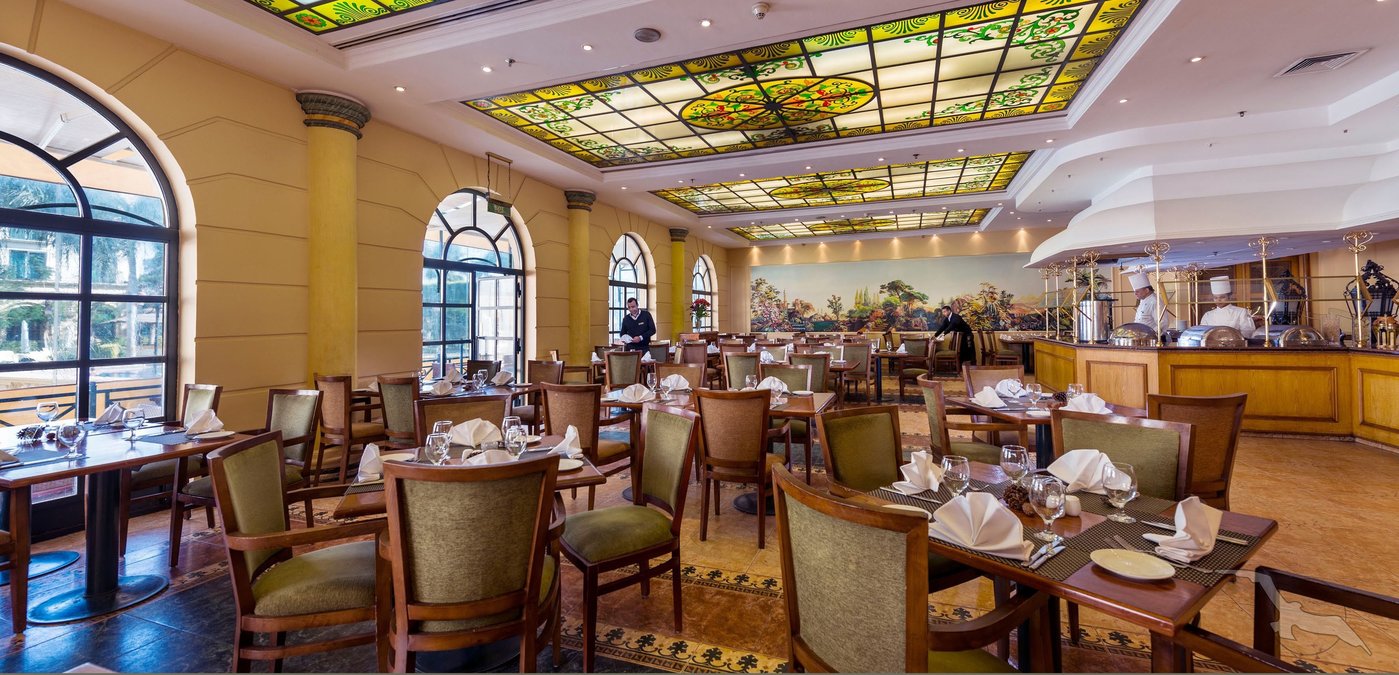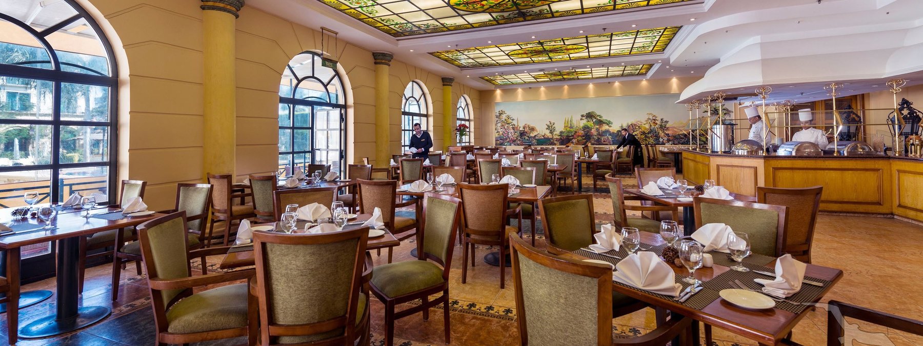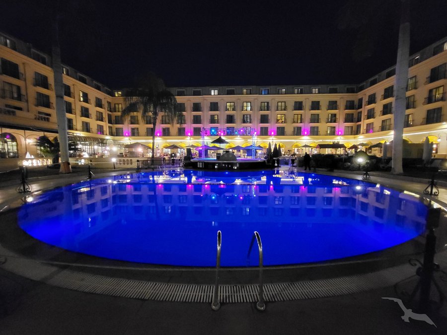 Das im gregorianischen Stil errichtete Hauptgebäude verfügt über eine Empfangshalle mit Rezeption, WLAN (inkl.), verschiedene Themenrestaurants (z.B. italienisch, orientalisch/libanesisch, international) , mehrere Bars sowie ein Bistro mit Terrasse. Großzügige Gartenanlage mit Swimmingpool (beheizbar; Liegen, Schirme, Badetücher inkl.), Fitnessraum (inkl.). Spa mit Sauna und Whirlpool (inkl.), Massageanwendungen und 24 Stunden Zimmer-Service (geg. Gebühr), Business-Center.