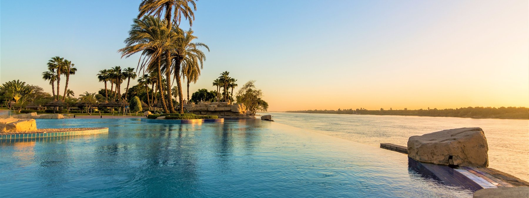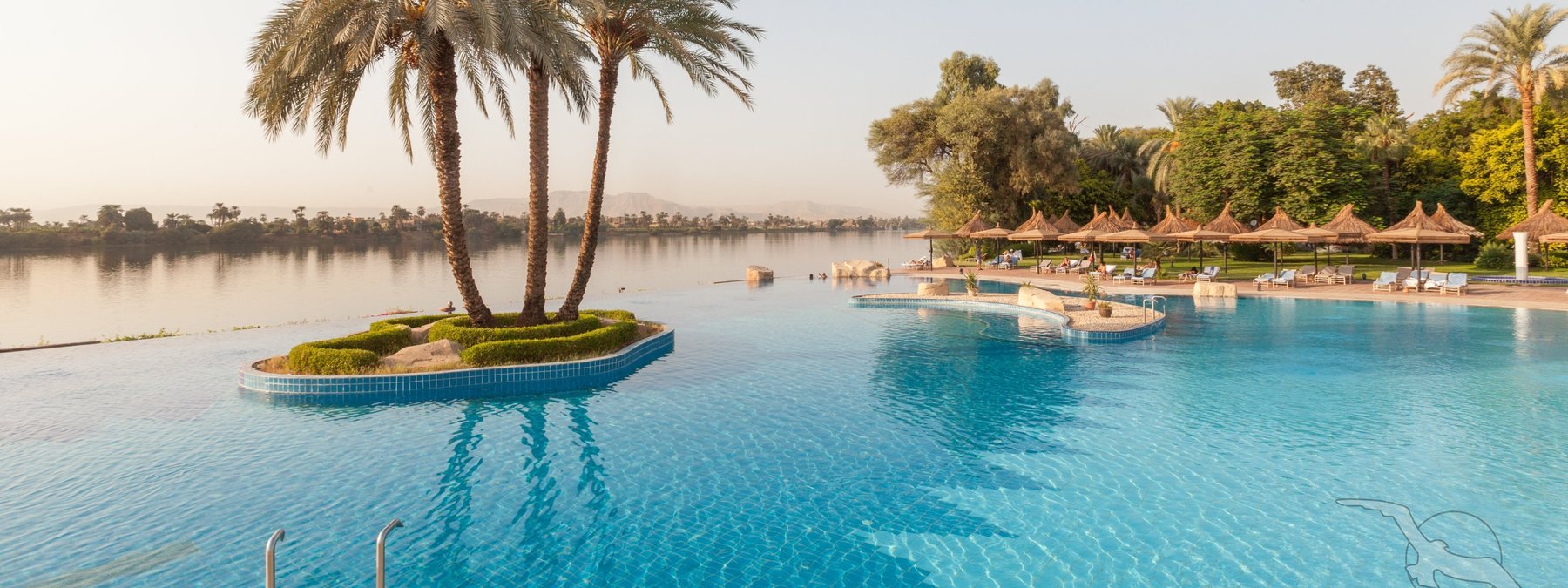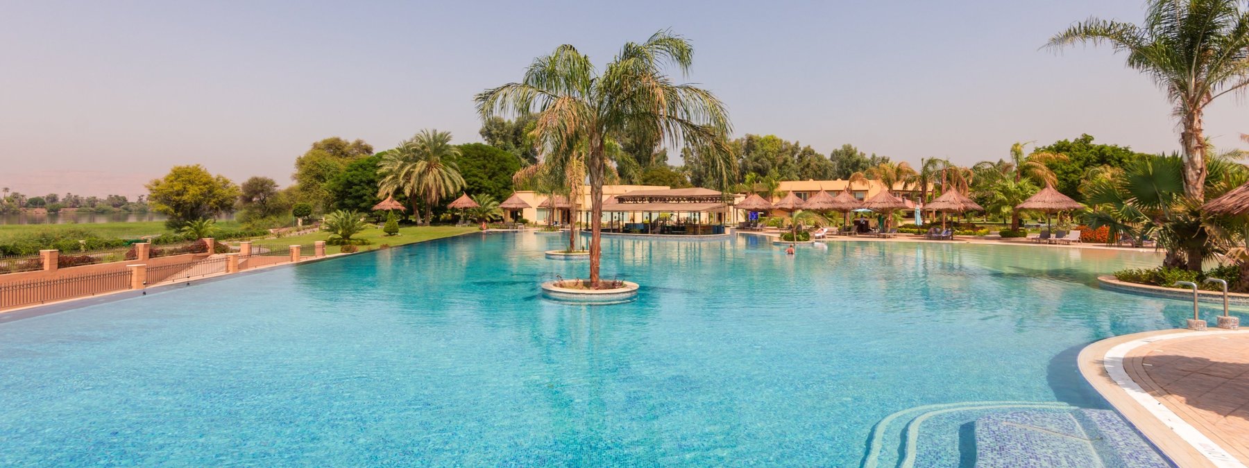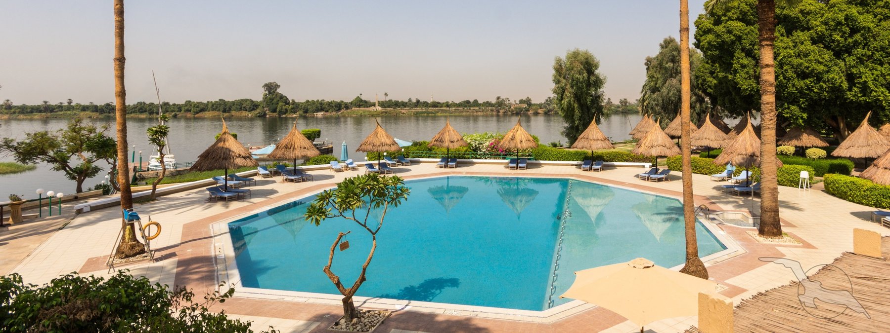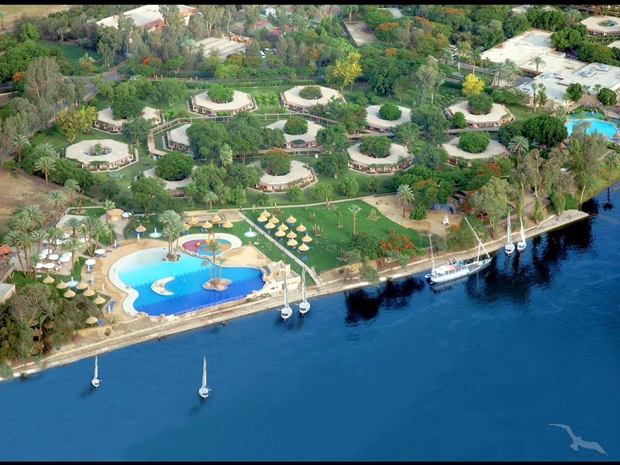 Ruhig und abgeschirmt, zwischen üppigen Nilgärten befindet sich das großflächige Resort auf der hoteleigenen Insel am südlichen Ortseingang nach Luxor. Bis zum Stadtzentrum am Luxor-Tempel sind des ca. 4 km. Der Flughafen ist 10 km entfernt.