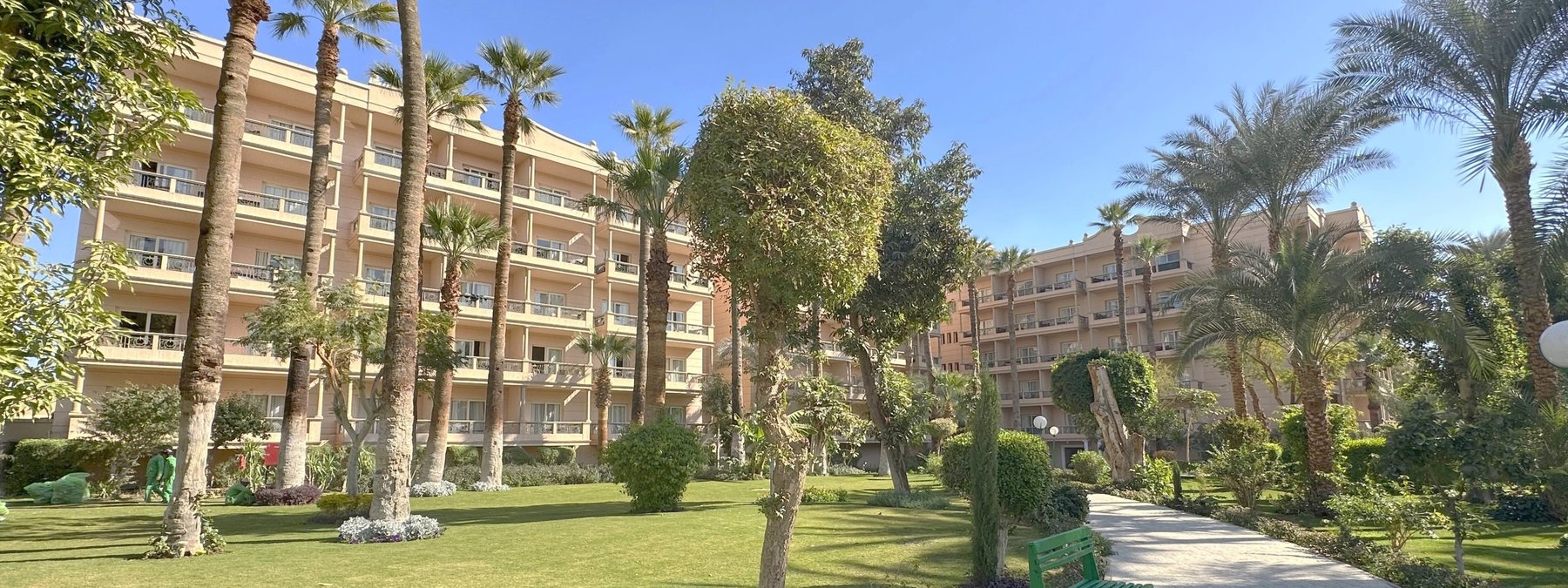 Zentral im Herzen Luxors gelegen. Ruhig, umgeben vom tropischen parkähnlichen Garten des legendären Palasthotel Sofitel Winter Palace. Wenige Gehminuten vom Nilufer und Luxor-Tempel entfernt.