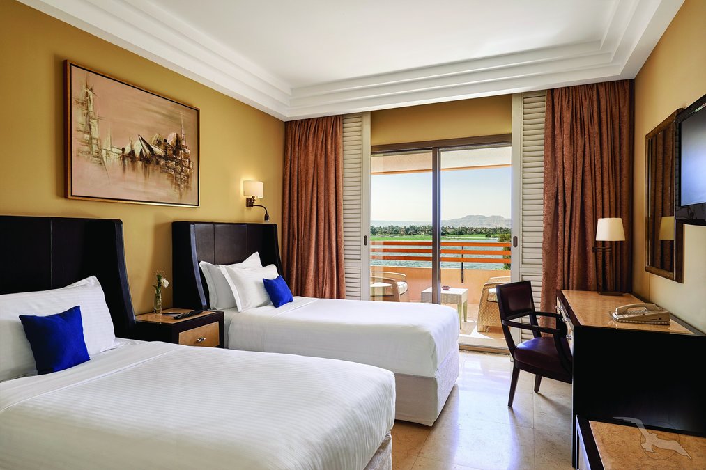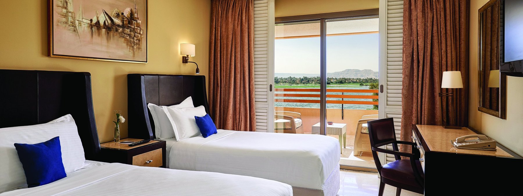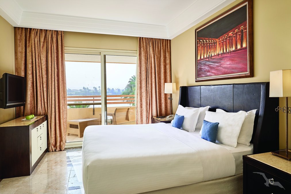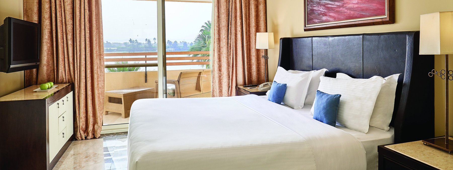 Doppelzimmer (DZ) Liegen im Haupthaus mit Balkon, Klimaanlage, Bad/WC, Föhn, Telefon, SAT-TV, Safe, Minibar (geg Gebühr), Tee und Kaffezubereiter und täglich 1 Flasche Wasser. Wahlweise mit Nilblick (DZN bzw, DSN) oder als Deluxezimmer Nilblick (DDN) bei gleicher Ausstattung größer und mit Wohnbereich buchbar.