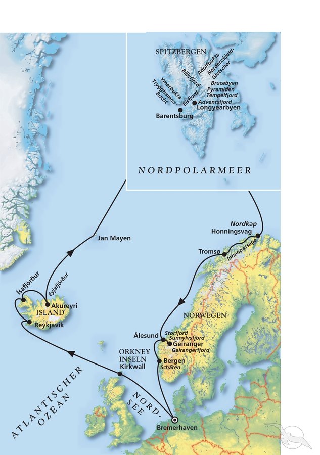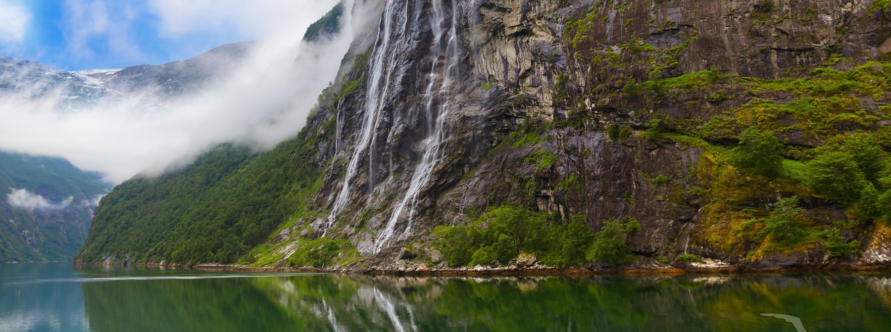Bei einer Nordkap Kreuzfahrt durch den Arktischen Ozean entdecken Sie die Ergebnisse einer spannenden Naturgeschichte. Jahrtausende lang haben sich mächtige Eispakete und Gletscher gebildet, die Sie in Grönland, Spitzbergen oder am Nordkap mit Blick auf das riesige Eismeer sehen können. Auch das Klima mit den langen Polarnächten im Winter und dem arktischem Sommer, in dem die Sonne nicht untergeht, ist typisch für diese Regionen der Erde. Der Sprengkraft des Gletschereises sind die grandiosen Fjorde Norwegens zu verdanken. Was die Natur geschaffen hat, können Sie etwa bei der 16 Kilometer langen Einfahrt in den Geiranger Fjord beobachten. Steile, schneebedeckte Berge rechts und links, von steilen Felsen spektakulär ins Meer rauschende Wasserfälle und eisblaues Wasser rauben Ihnen den Atem.