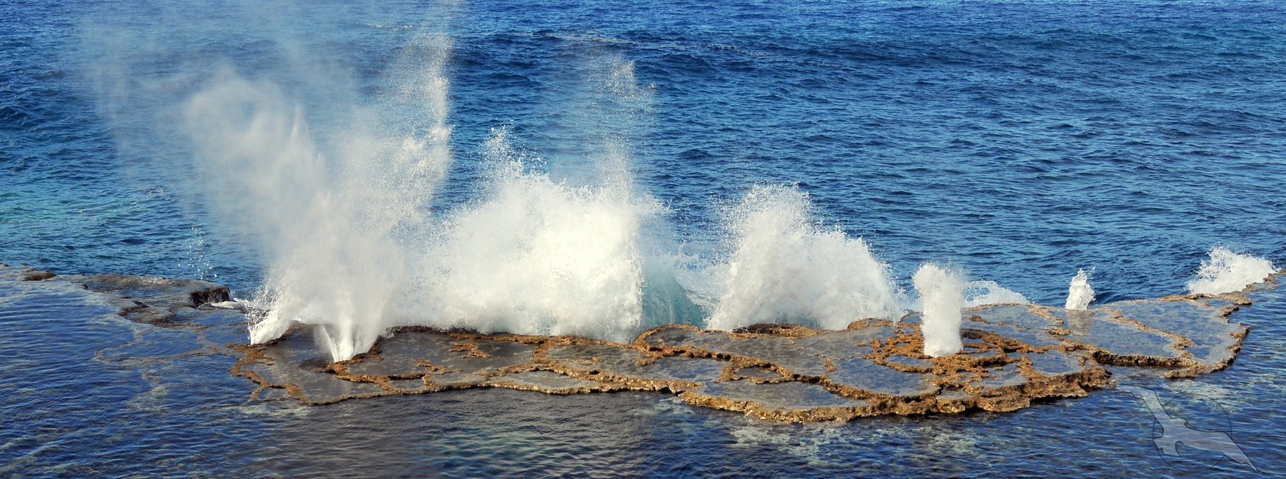 Durch "Blowholes" schießt Wasser fontänenartig in die Luft