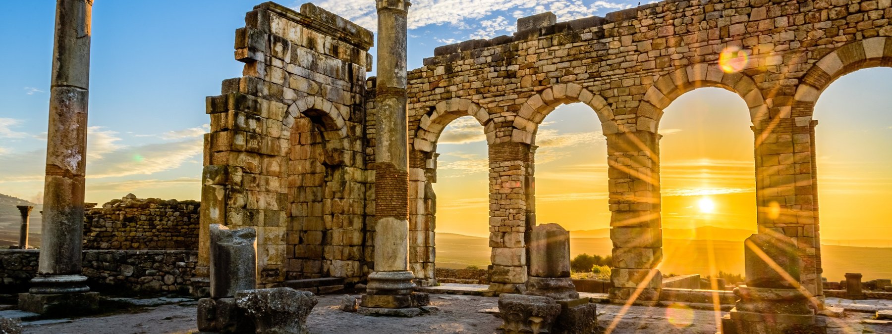 Tagesausflug in die Umgebung von Fès. Sie besuchen den Pilgerort Moulay Idris, die römischen Ausgrabungen von Volubilis und anschließend die Königs- und Residenzstadt Meknès. Dort sehen Sie die gewaltigen Speicher- und Wehranlagen sowie das berühmte Stadttor Bab el-Mansour.