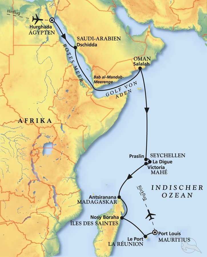 Im Orient erwartet Sie eine facettenreiche Mischung aus antiker Baukunst, Kulturreichtum und Flair wie aus 1001 Nacht. Besonders beliebt während einer Orient-Kreuzfahrt ist eines der sieben Weltwunder der Neuzeit: die Ruinenstadt Petra in Jordanien. Ein Ort, an dem Moderne auf orientalischen Charme trifft, ist die Metropole Dubai, die zum einen mit dem höchsten Wolkenkratzer der Welt, zum anderen durch wunderschöne und altehrwürdige Moscheen begeistert. Noch als Geheimtipp zu betrachten: Salalah, die Hauptstadt des Oman. Ein Besuch der Sultan-Qaboos-Moschee, ein Bummel durchs historische Stadtzentrum oder ein Ausflug zum Grabe des Nabi Imran lassen die Zeit wie im Flug vergehen.