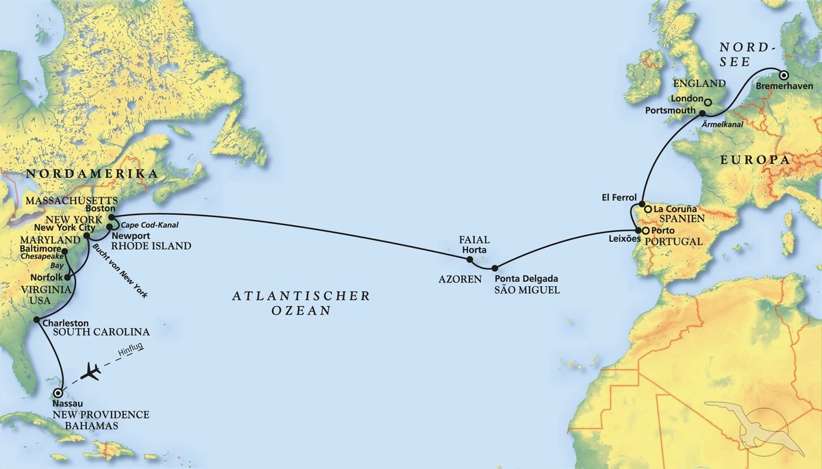Bremerhaven - Portsmouth - Cádiz - Santa Cruz de la Palma - Roseau - St. John's - Santo Domingo - San Blas Inseln - Panama-Kanal - Fuerte Amador (Panama)