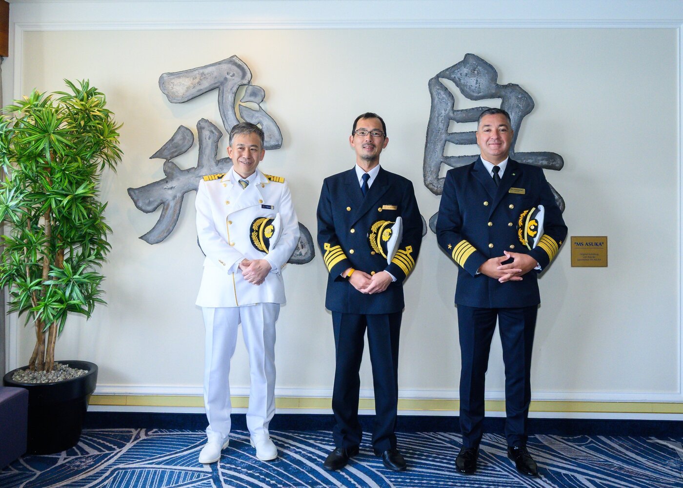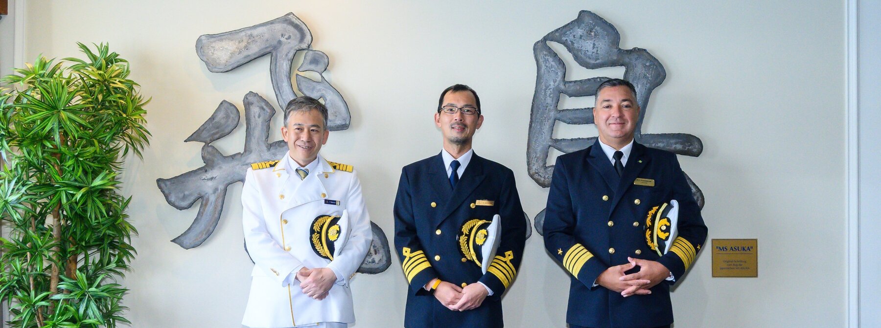 Foto: Kapitän der Asuka 3 Toshimitsu Kamiya, Kapitän der Asuka 2 Kosuke Watanabe, Kapitän der Amadea Robert Fronenbroek