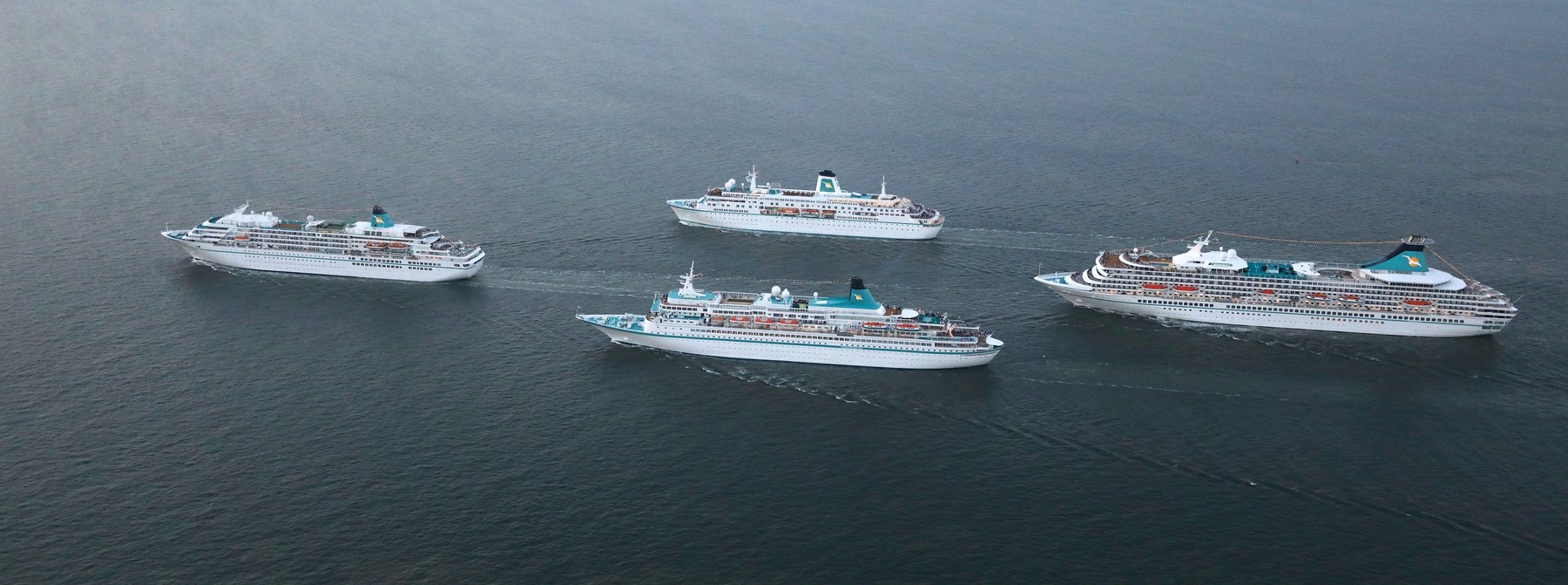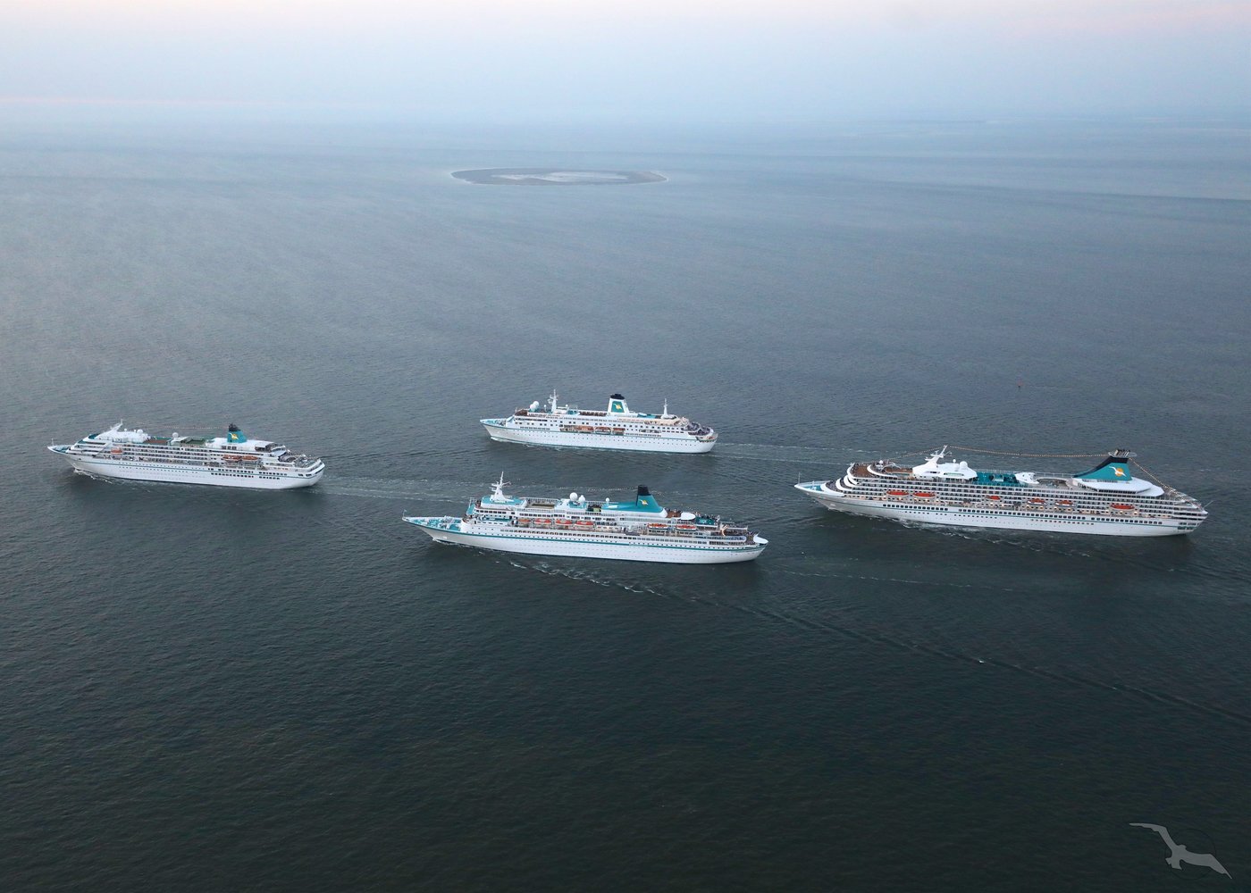 MS Amadea, MS Deutschland, MS Artania und MS Albatros zusammen an der Columbus-Kaje
