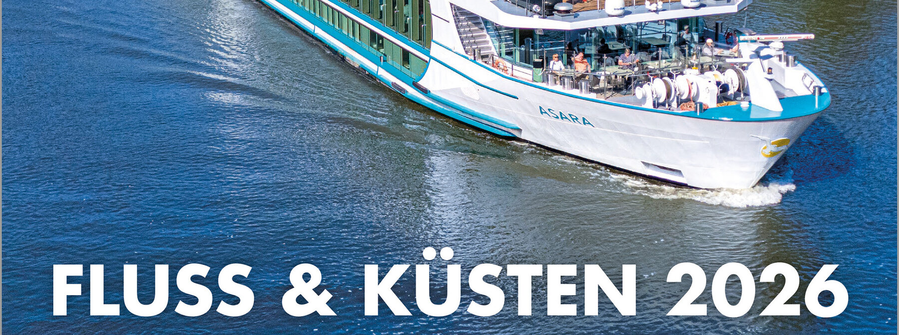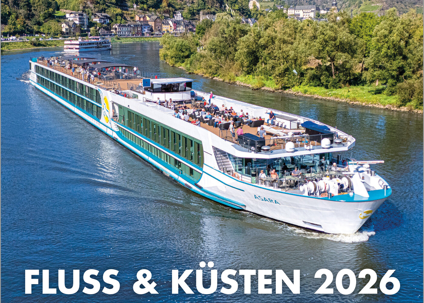 Der neue Katalog "Fluss und Küsten 2026" wird am Freitag, 29.08.2025, an die Reisebüros ausgeliefert.
