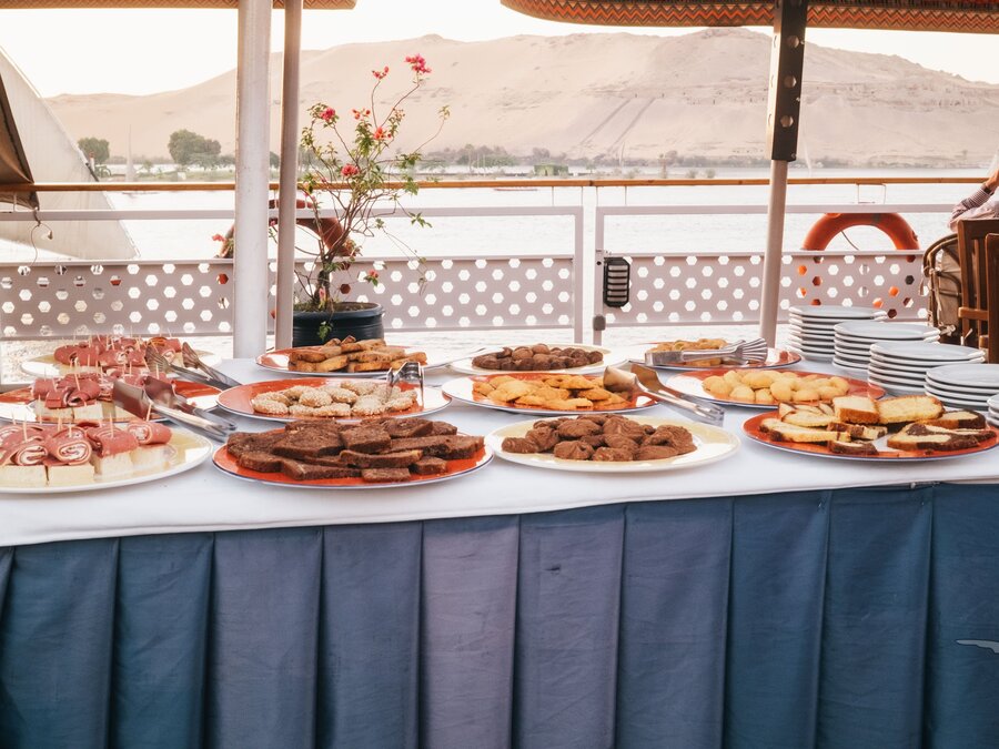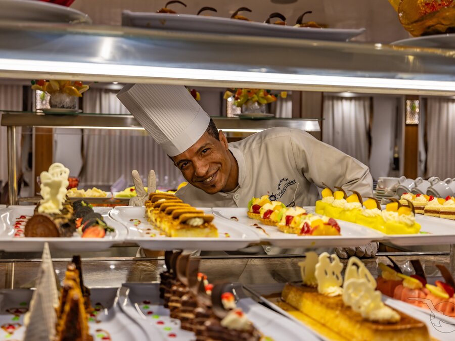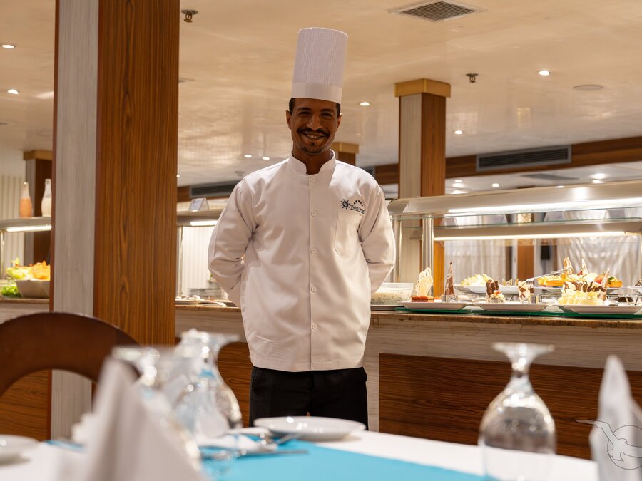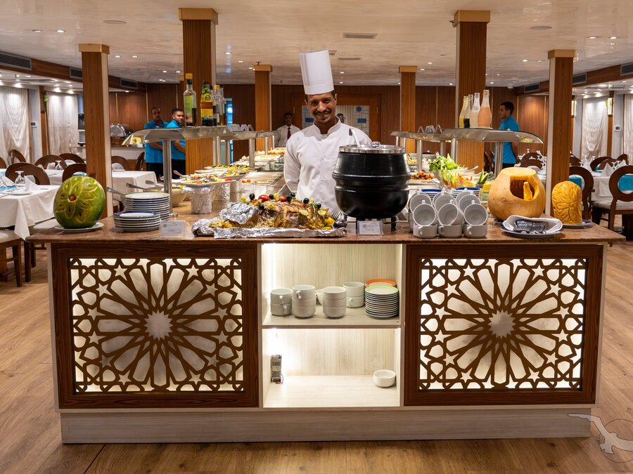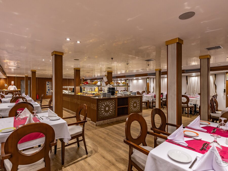 Unsere Nilschiffe verfügen über komfortable und geschmackvoll eingerichtete Restaurants. Ein aufmerksames Restaurant- und Küchenteam kümmert sich mit internationalen und einheimischen Gerichten, die liebevoll in Buffetform serviert werden, um Ihr kulinarisches Wohlergehen. Die zu Beginn der Reise gewählten Sitzplätze werden in der Regel beibehalten.