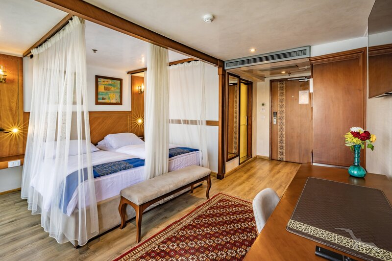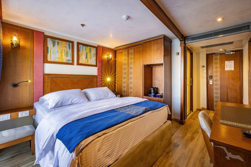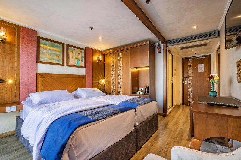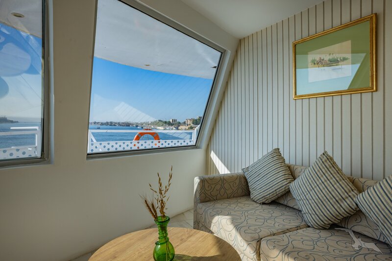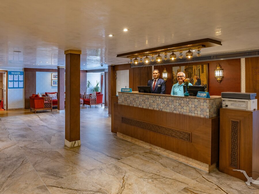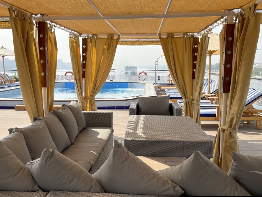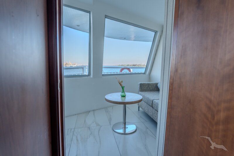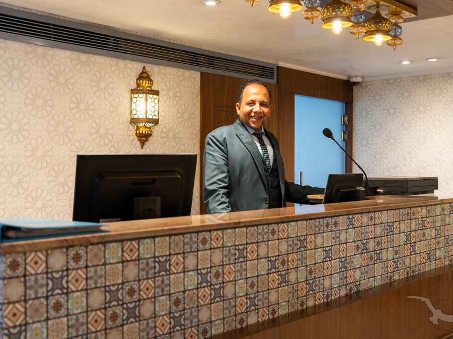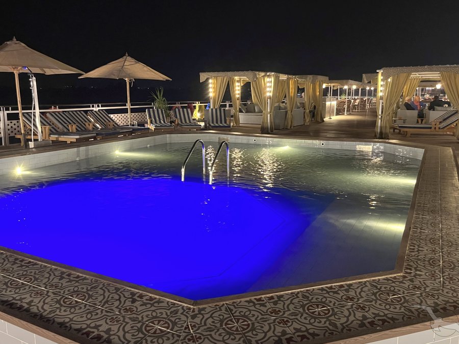 Das 2023 komplett neu gestaltete Nilkreuzfahrtschiff ist auf allen fünf Passagierdecks baulich verändert und überholt worden. In neuem Design verfügt es über großzügig konzipierte öffentliche Bereiche wie Rezeption mit Eingangshalle, Lounge/Bar/Salon, Restaurant (gemeinsame Tischzeit) und ein Sonnendeck mit Swimmingpool sowie Café-Bar/Terrasse. Alle Einrichtungen des Schiffs sind geschmackvoll, modern und hochwertig mit orientalischen Stilelementen landestypisch ausgestattet. Das vollklimatisierte First-Class-Schiff (Landeskategorie 5 Sterne deluxe) verfügt über einen Aufzug, Sauna, Fitnessecke, Massagebereich, Boutique/Shop. Auf dem Sonnendeck befindet sich das Außencafé mit Terrasse, auf dem ausreichend Schattenplätze unter Sonnensegeln und Sonnenliegen/-schirme vorhanden sind. BBQ/Grillstation, WLAN in der Lounge kostenfrei (eingeschränkter Empfang). Unsere Deutsch sprechende Reisleitung sowie die gut ausgebildeten, lizensierten Reiseführer begleiten Sie während der gesamten Reise zu den Höhepunkten Ihrer Kreuzfahrt und stehen Ihnen jederzeit zur Verfügung. Die aufmerksame Schiffscrew verwöhnt Sie an Bord bis zur Ausschiffung. Bordwährung ist das Ägyptische Pfund (EURO wird akzeptiert).