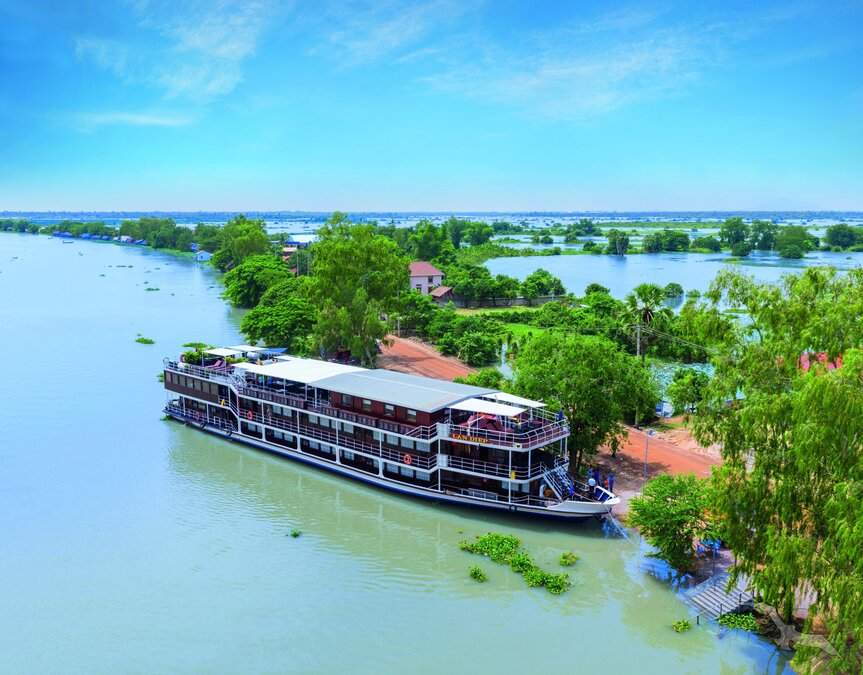 • Frühstück und Mittagessen in Buffetform, Abendessen wird serviert. Neben europäischer Küche werden auch Spezialitäten aus Kambodscha und Vietnam angeboten