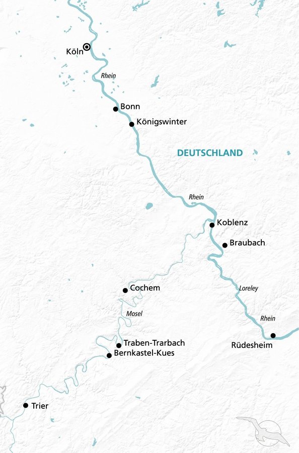- Inklusive Transfer vom Bahnhof zum Schiff bzw. umgekehrt bei den Häfen Passau und Köln.