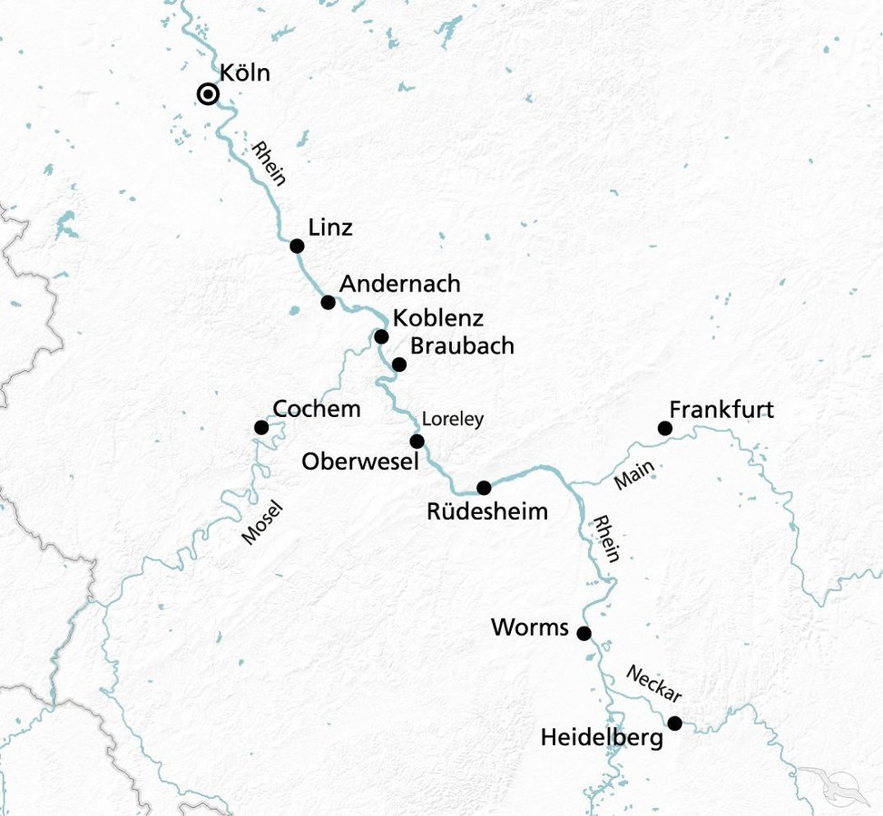 Bei individueller Bahnanreise: In Köln kann ein Transfer vom Schiff zum Bahnhof am Ausschiffungstag für € 10,- pro Person vorab gebucht werden.