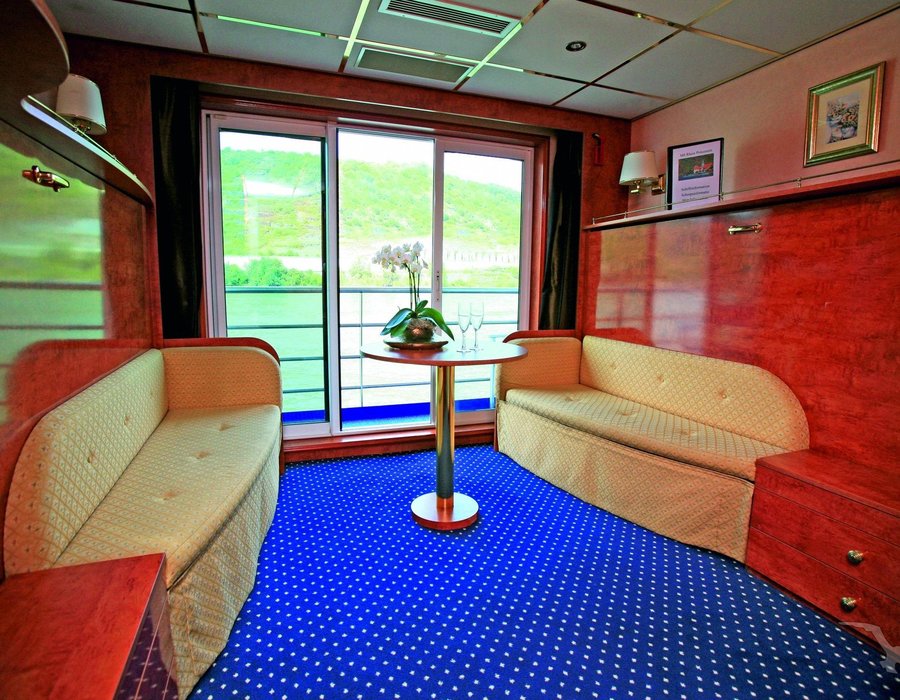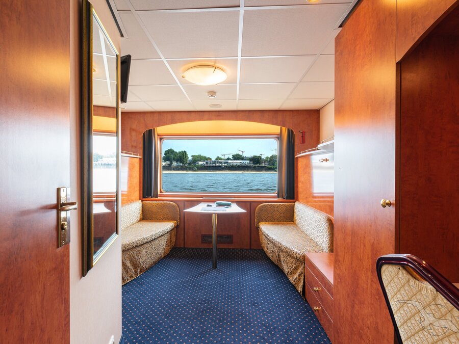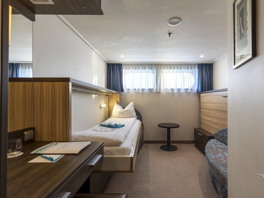Alle Kabinen liegen außen und sind komfortabel und gemütlich eingerichtet mit kleinen Fenstern die aus Sicherheitsgründen nicht zu öffnen sind. Die Kabinen dieser Kategorie liegen im vorderen Bereich des Schiffes, bei Anlegemanövern und Schleusendurchfahrten verstärkte Geräusche des Bugstrahlruders.