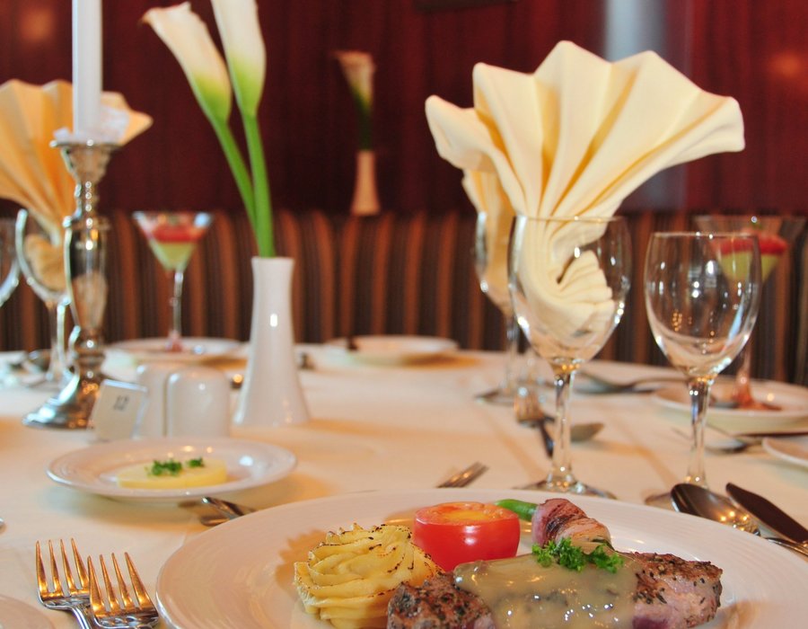 - Vollpension an Bord (beginnend mit dem Abendessen des ersten Tages, endend mit dem Frühstück am letzten Tag): Frühstücksbuffet, mehrgängiges Mittag- und Abendessen, Nachmittagskaffee/Tee, Mitternachtssnack. Gehobene europäische Küche.