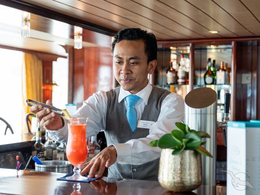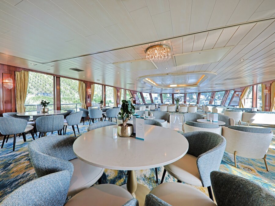 Zahlreiche Mitarbeiter in Küche und Restaurant sorgen täglich für Ihr leibliches Wohl an Bord. Genussvolle Menüs durch fest eingespielte Küchenteams werden für Sie zubereitet. "Essen, was das Herz begehrt" - Zahlreiche Mahlzeiten von früh bis spät - einschließlich Kapitänsempfang und Kapitäns-Dinner mit festlichem Menü. Essen ohne eng gefasste Essenszeiten immer in einer Tischzeit! Auf Wunsch servieren wir Ihnen auch Gerichte für spezielle Diäten (Diabetiker, Glutenfrei, Laktosefrei, Vegan etc.)