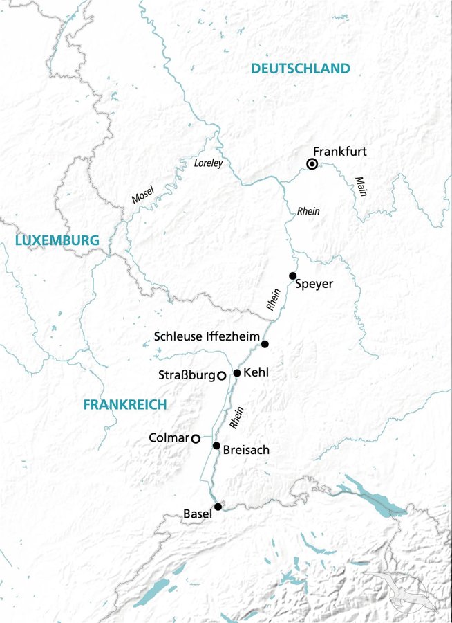 Auf unserer neuen 5-tägigen Route zeigen wir Ihnen die schönsten Regionen und Städte entlang des Oberrheins. In Frankfurt gehen Sie an Bord unseres First-Class-Schiffes MS Alena und genießen in Kürze alle Annehmlichkeiten einer Flussreise, während Sie wunderschöne Landschaften passieren. Unsere aufmerksame Crew wird Sie die nächsten Tage mit einem hervorragenden Service verwöhnen. Sie besuchen die Städte Speyer und Breisach mit verschiedenen Ausflugsmöglichkeiten. Anschließend stehen die Höhepunkte dieser Reise mit Basel und Straßburg auf dem Programm. Erkunden Sie die Städte auf unseren Ausflügen oder auf eigene Faust. Es gibt viel Schönes zu entdecken.