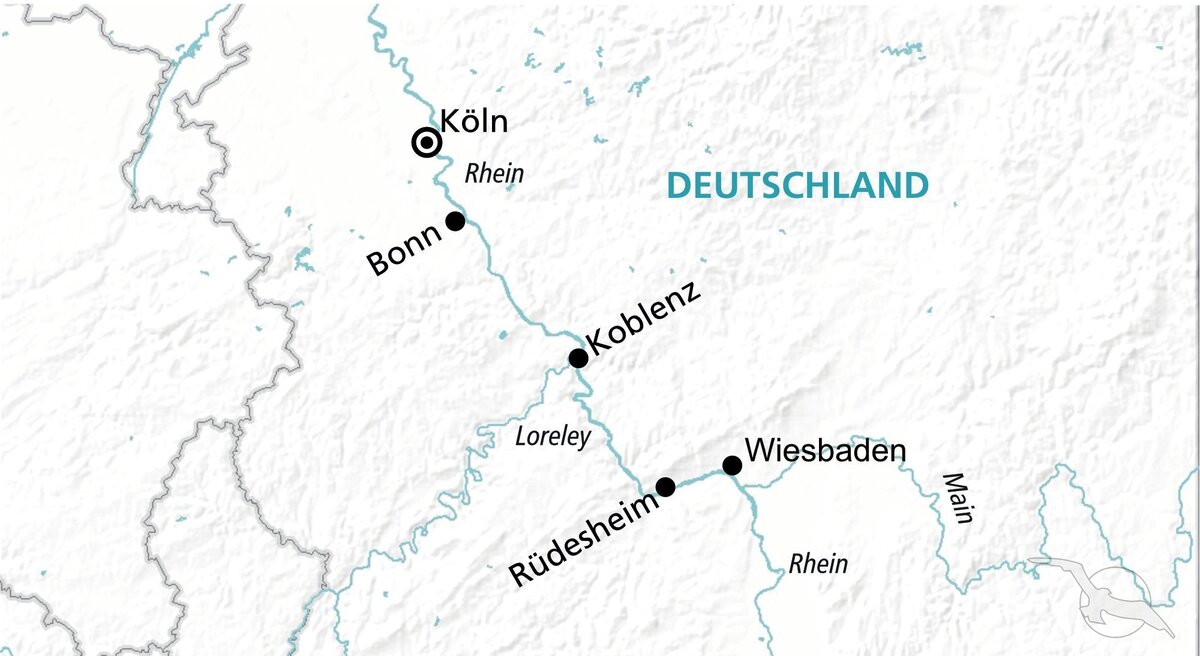 Kommen Sie mit an Bord unseres First-Class-Schiffes MS Asara und freuen Sie sich auf eine unvergessliche Flussreise entlang des Rheins. Zwischen lebendigen Städten, romantischen Uferlandschaften und traditionsreichen Weinregionen erwartet Sie eine abwechslungsreiche Route: von Köln über Rüdesheim und Wiesbaden bis nach Koblenz und Bonn – und schließlich zurück nach Köln. Entdecken Sie historischen Altstädte, genießen Sie malerische Ausblicke auf Burgen und Weinberge und lassen Sie sich vom besonderen Charme des Rheins verzaubern. Eine Reise voller Kultur, Genuss und entspannter Momente auf dem Wasser.