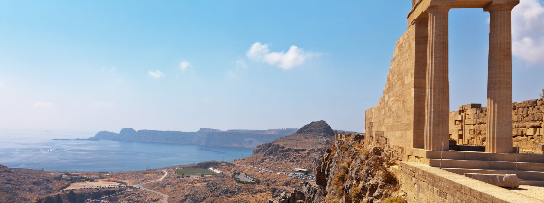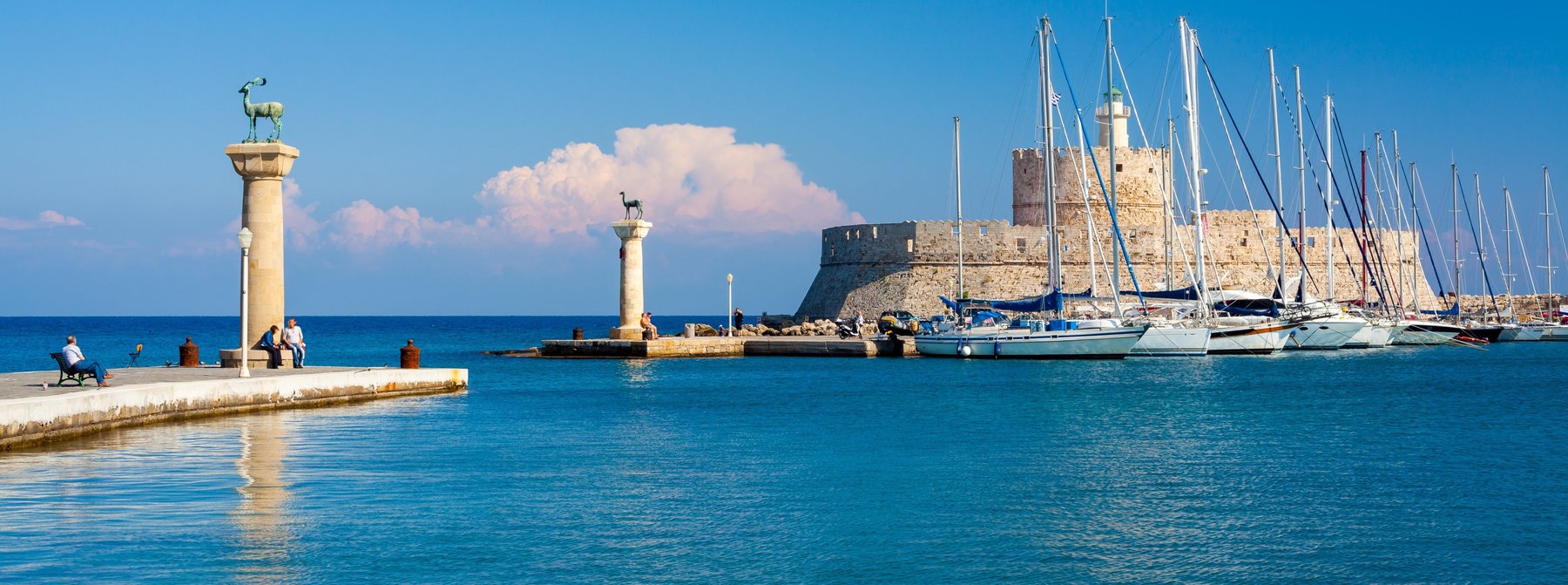 Vom Hafen aus beginnt Ihre Rundfahrt durch die Neustadt zum Mandrakihafen. Hier sehen Sie die Wahrzeichen Elafos und Elafina, die Evangelismos Kirche und alle Verwaltungsgebäude im venezianischen Baustil. Kurze Zeit später erreichen Sie den nördlichsten Zipfel der Insel, wo sich das Meer in Ägäis und Lykisches Meer teilt. Bei klarer Sicht können Sie bis in die Türkei blicken. Westwärts geht es über Serpentinen auf den Filerimos Berg, wo Sie von einer Anhöhe aus ein fantastisches Panorama auf die Ebenen von Rhodos genießen. Auf der Rückfahrt Fotostopp am Monte Smith an den Überresten des Apollo Tempels. In Rhodos-Stadt umrunden Sie die beeindruckende Altstadtmauer der mittelalterlichen Kreuzritterstadt, bevor Sie zum Schiff zurückkehren.