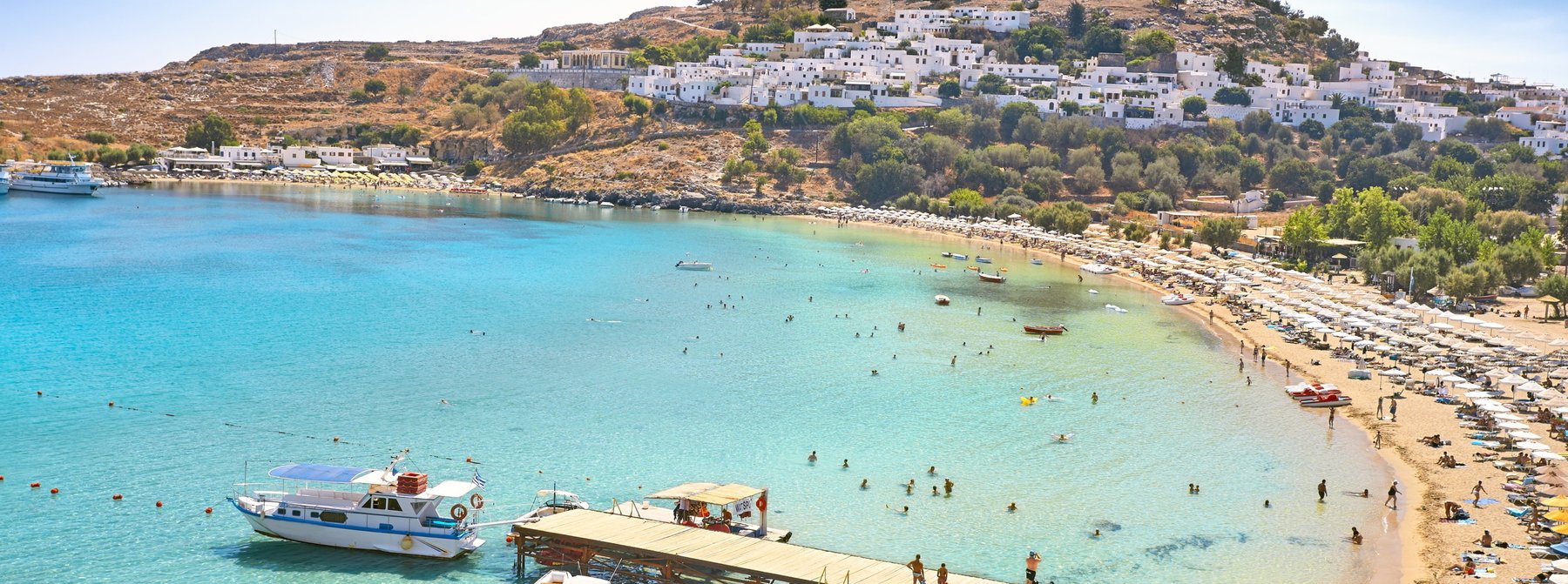Etwa 1-stündige Fahrt entlang der Ostküste nach Lindos. Der Ort gehört zu den eindrucksvollsten Landschaftsbildern Griechenlands mit malerisch an einer Bucht angesiedelten Häusern, die teilweise mit Keramikfliesen verziert sind. Bekannt ist die Akropolis der Göttin Athena Lindia, auf der Anhöhe gelegen, welche Sie zu Fuß erklimmen können (viele Treppenstufen). Führung und Besichtigung der Akropolis. Abstieg und Freizeit im Ort für eigene Unternehmungen. Danach kehren Sie mit dem Bus auf gleicher Strecke nach Rhodos-Stadt zurück.