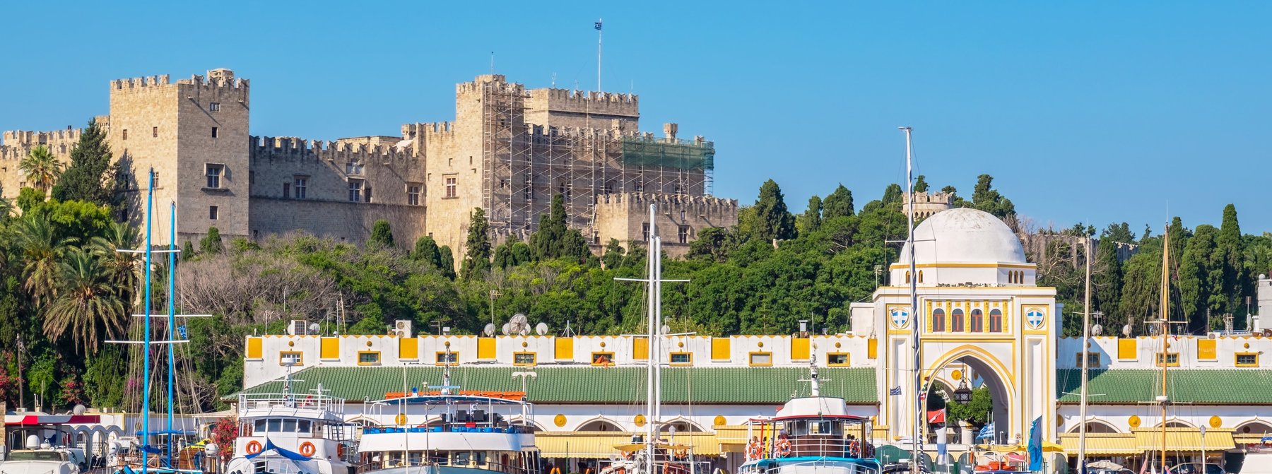 Zunächst Besuch der Thermen von Kalithea, die am Rande einer Bucht südlich von Rhodos-Stadt liegen. Die aufwändig restaurierte Anlage, deren Gründung auf die Zeit des römischen Kaisers Augustus zurückgeht, ist seit der Wiedereröffnung 2007 ein beliebtes Ausflugsziel. Szenen aus bekannten Filmen wie z.B. "Die Kanonen von Navarone" oder "Urlaub auf Rhodos" aus der Krimiserie "Die Abenteuer des Hercule Poirot" wurden hier gedreht. Während einer kleinen Panoramafahrt fahren Sie zum Stadthügel Monte Smith, wo Sie die Akropolis von Rhodos, den Apollon Tempel und das antike Wettkampfstadion sehen. Weiterfahrt Richtung Neustadt vorbei am Mandraki Hafen bis zum Tor d’Amboise, von dem es dann zu Fuß durch die Altstadt geht. Während eines geführten Rundgangs sehen Sie den Großmeisterpalast, die Ritterstraße, die Süleyman-Moschee sowie die Bazarstraße. Anschließend Freizeit für einen individuellen Bummel und Rückkehr zum Schiff.