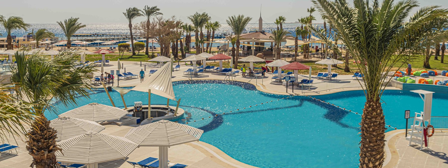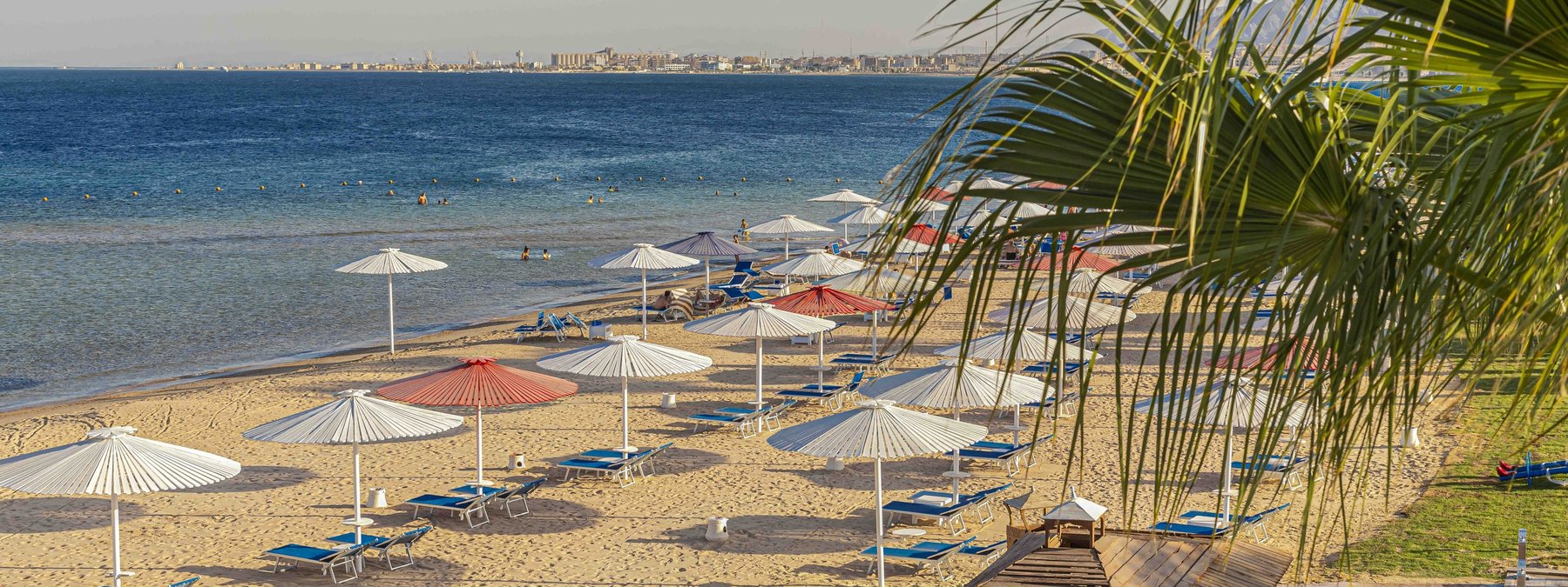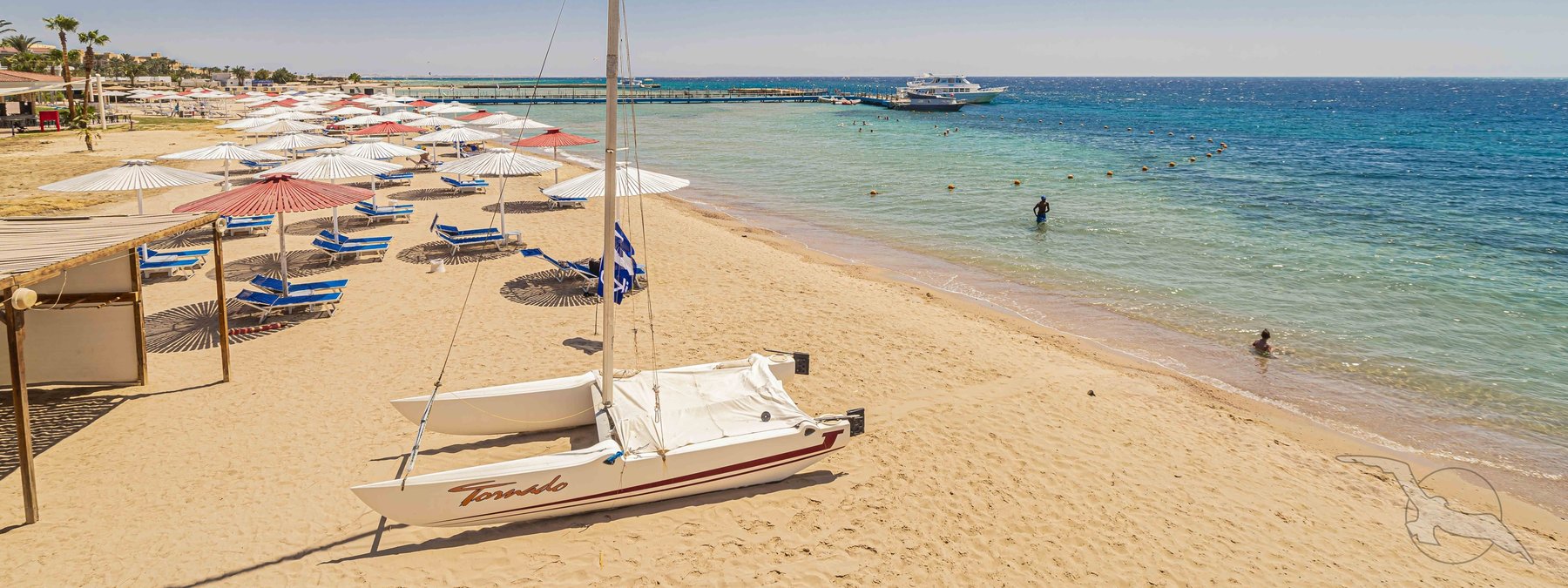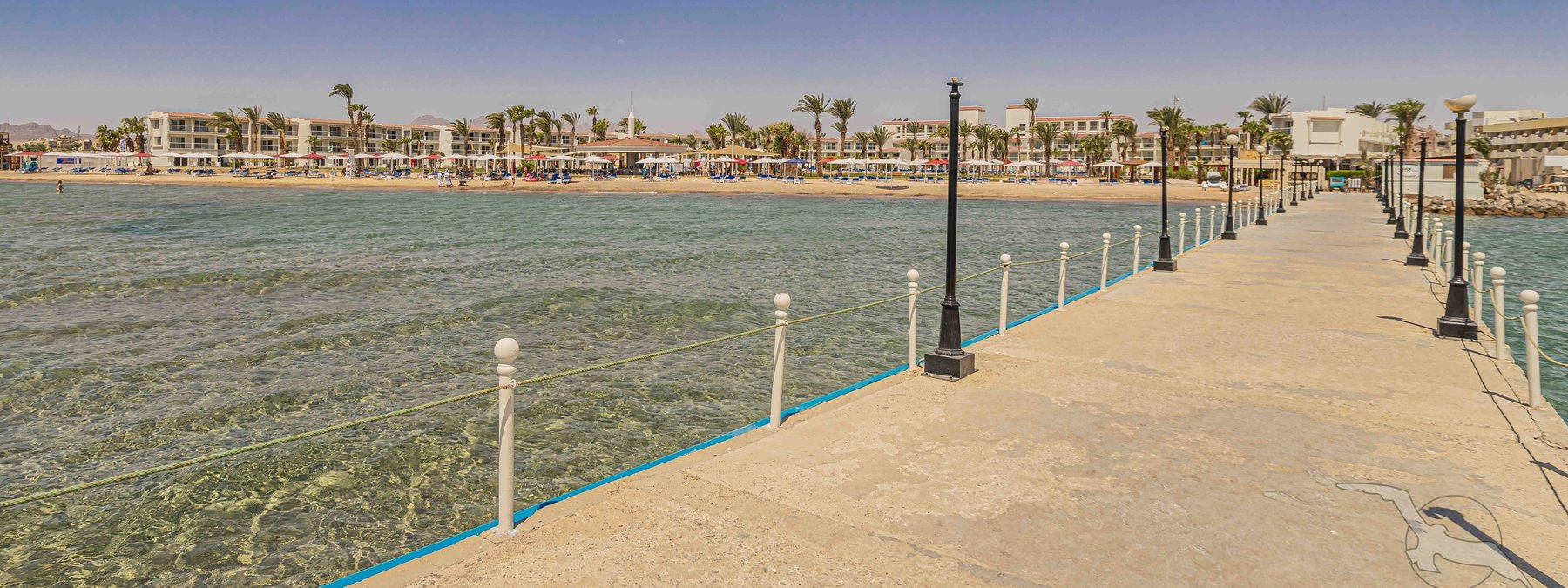 Direkt am hoteleigenen feinsandigen Strand gelegen (Badeschuhe empfohlen). Ein Badesteg ist vorhanden. Der Ortskern von Safaga ist 8 km entfernt. Nach Hurghada sind es ca. 45 Fahrminuten.
