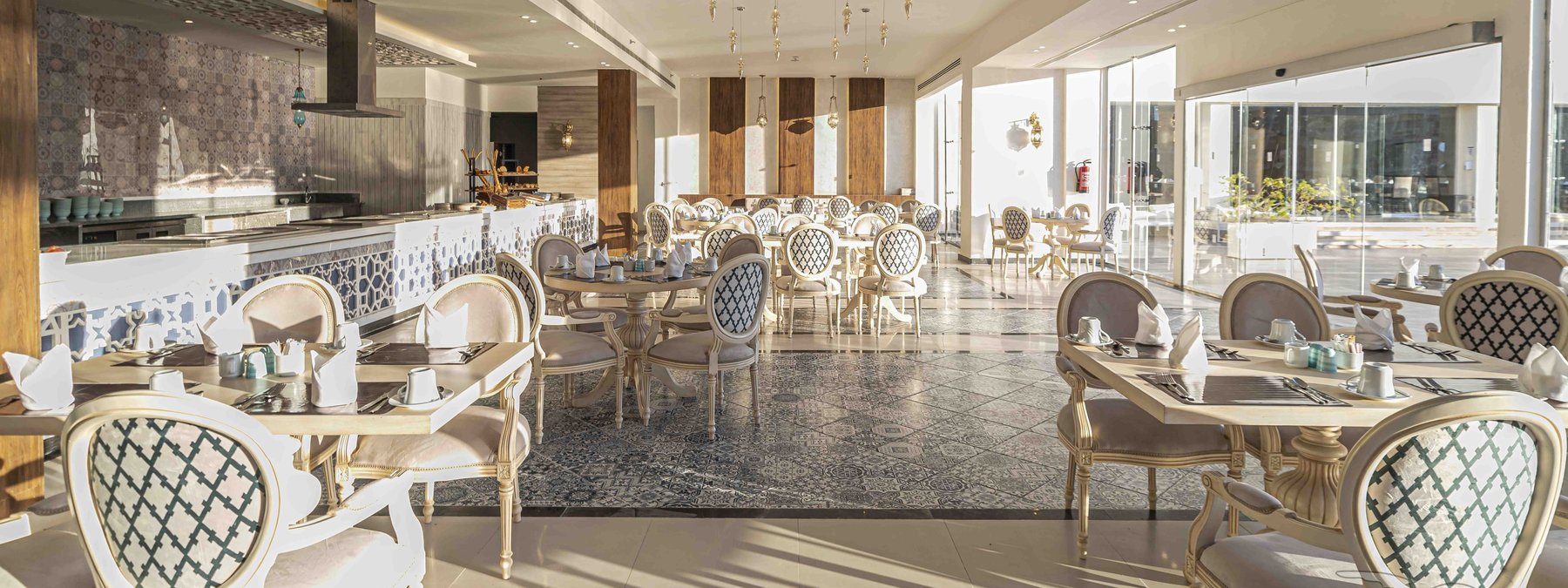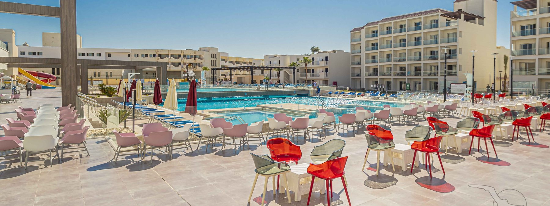 Das komfortable Hotel im modernen Stil verfügt über eine Empfangshalle mit Rezeption, Lobbybar, WLAN (in der Lobby inkl.), ein Hauptrestaurant, drei á la carte Restaurants (italienisch, asiatisch und orientalisch), mehrere Bars, Wellnessbereich, Geschäfte, Arztservice und Wäscheservice. In der Außenanlage befinden sich 5 Swimmingpools (teilw. beheizbar), Aqua Park (Mindestgröße 130 cm), separater Kinderpool mit Wasserrutsche und Pool-/Snackbar. Liegen, Sonnenschirme und Badetücher sind an Pool und Strand mit Beachbar inklusive.