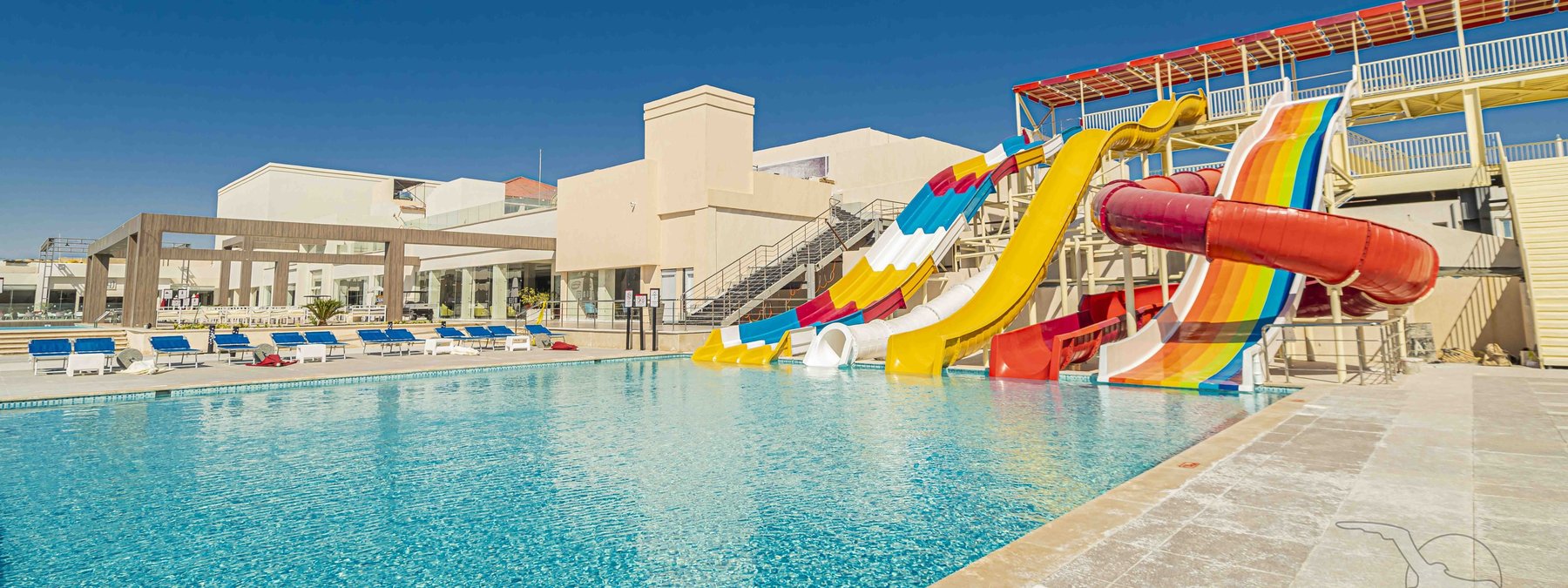 Miniclub (4-12 Jahre), Aqua Park (Mindestgröße 130 cm), Kinderpool mit Wasserrutsche. Spielplatz.