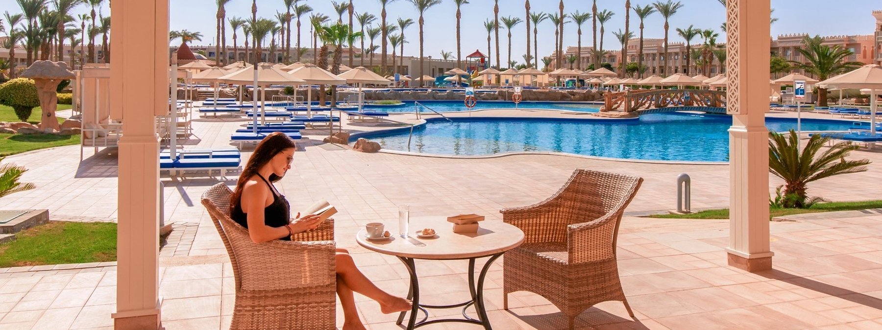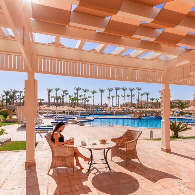 Neben der Schwesteranlage Albatros Palace Resort am hoteleigenen Sandstrand, ca. 15 km vom Zentrum Hurghadas und ca. 7 km vom Flughafen und der Fußgängerpromenade entfernt. Geschäfte und Souvenirläden befinden sich in der Anlage.