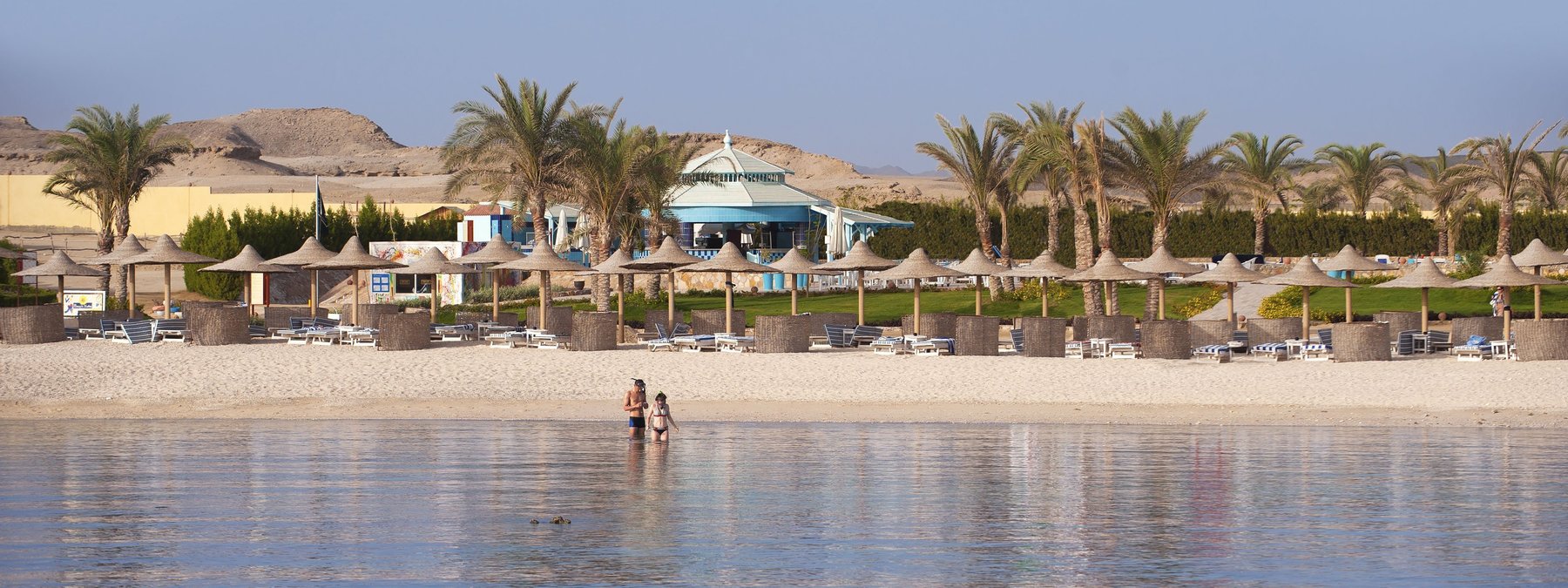 Das ruhig gelegene Hotel befindet sich direkt am langen Sandstrand mit vorgelagertem Hausriff an der schönen Bucht von Abu Dabur. Korallenwuchs bis zum Uferbereich (Badeschuhe empfohlen). Der Badesteg führt über die Korallenbank in tieferes Gewässer. Der Flughafen Marsa Alam ist ca. 24 km entfernt.