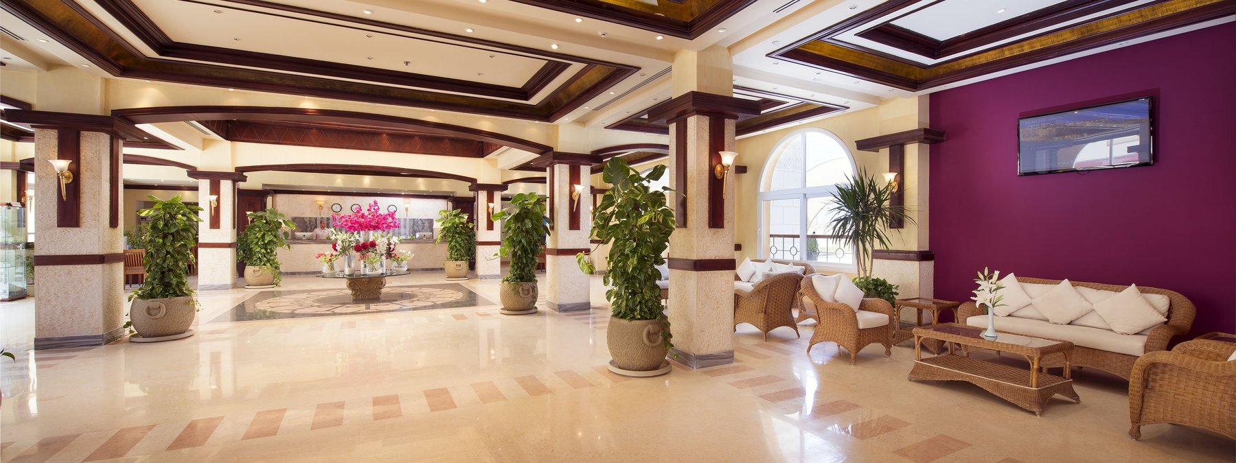 Die komfortable und weitläufige Ferienanlage besteht aus einem Haupthaus, mehreren zweistöckigen Nebengebäuden und verfügt über eine Eingangshalle mit Rezeption und Lobbybar, WLAN (in den öffentlichen Bereichen inklusive), Hauptrestaurant, italienisches à la carte Restaurant, Fischrestaurant und Skybar. In der schön gestalteten Gartenanlage liegen zwei große Swimmingpools (beheizbar) mit zwei separaten Kinderpools (beheizbar), Sonnenterrassen und eine Poolbar. Liegen, Sonnenschirme und Badetücher sind an Pool und Strand, mit Bechbar inklusive.