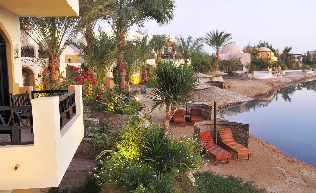Im Zentrum von El Gouna, inmitten einer Lagune gelegen. Kostenloser Bootstransfer zum schönen Badestrand “Zeytouna Beach“ mit Badesteg. Hurghada liegt ca. 30 km südlich.