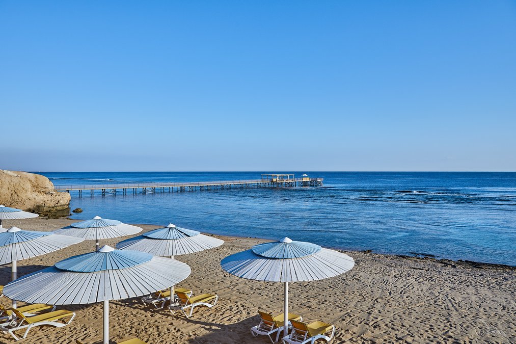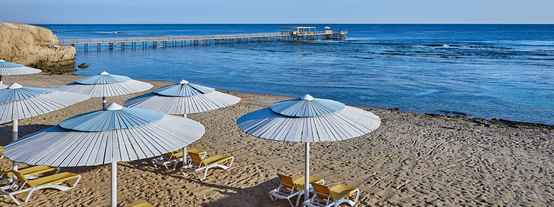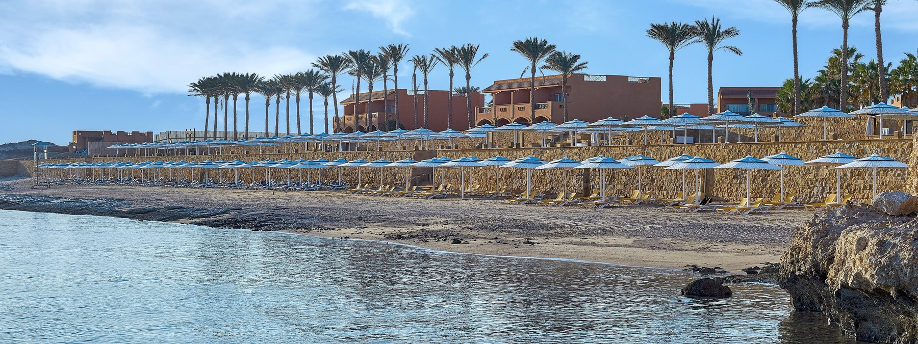 Direkt am hoteleigenen Strand gelegen. Ein Steg führt über die Korallen in tieferes Gewässer (Badeschuhe empfohlen). Gute Schnorchel- und Tauchbedingungen. Zur schönen Uferpromenade von Port Ghaleb und zum Flughafen Marsa Alam sind es ca. 5 km.