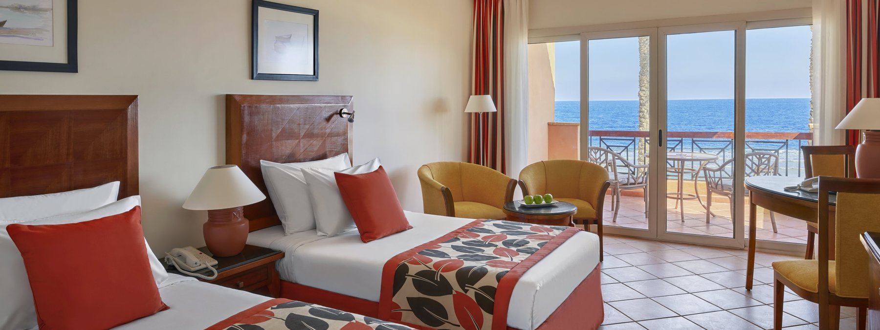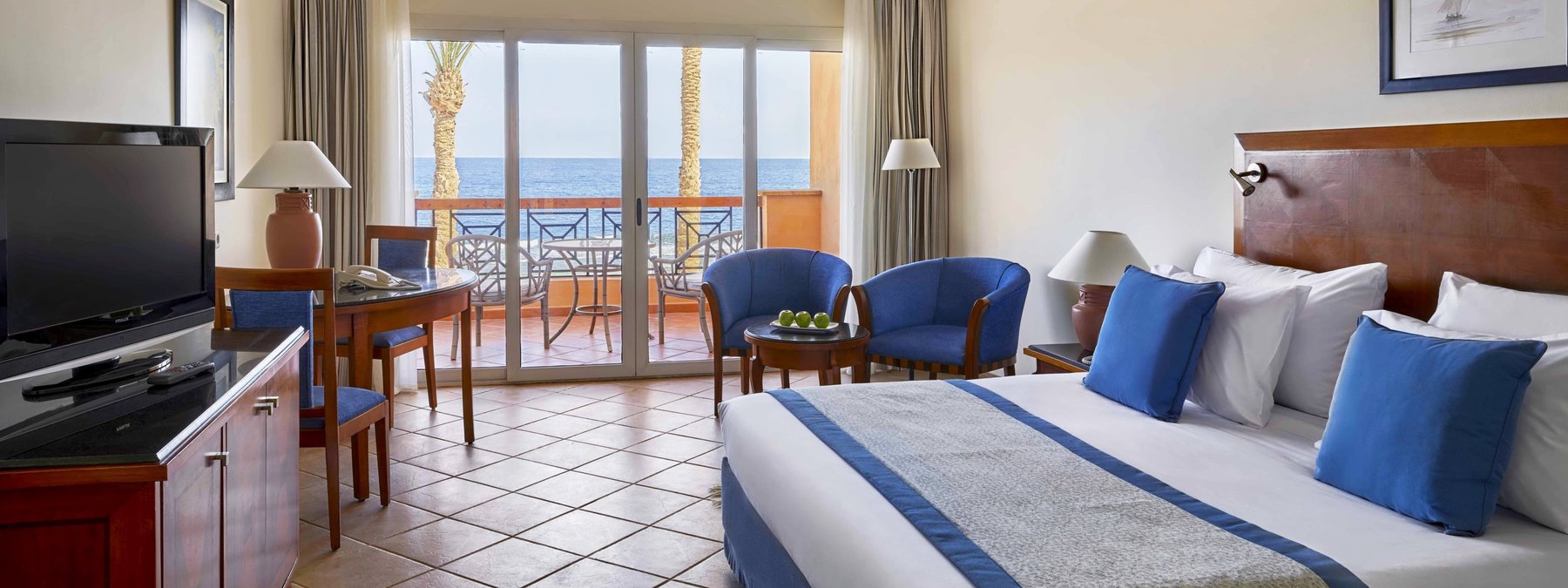 Superiorzimmer (DZS) Großzügig (36 m²) und geschmackvoll eingerichtet, mit Klimaanlage, Bad/WC, Fön, Telefon, SAT-TV, WLAN, Safe, Kaffee-/Teezubereiter, Minibar (geg.Gebühr) und Balkon oder Terrasse zur Gartenseite. Wahlweise Superiorzimmer mit Poolblick (DSP), seitlichen Meerblick (DSS) oder mit direktem Meerblick (DMS) buchbar.