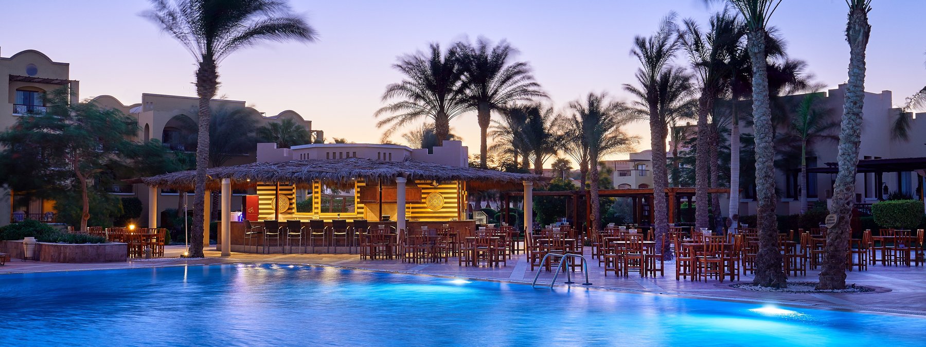 Die gepflegte Anlage ist im nubischen Stil erbaut und in die Gesamtarchitektur des “Madinat Makadi“ integriert. Im Hauptgebäude befinden sich der elegante Eingangsbereich mit Rezeption/Lobby, WLAN (in der gesamten Anlage inkl., begrenzte Geschwindigkeit), Hauptrestaurant mit Terrasse, Bar und& Billardzimmer. Der große Makadi “Mivida Spa“-/Wellness-Bereich befindet sich direkt daneben. Die beiden zweistöckigen Wohnflügel umfassen den großen Swimmingpool mit separatem Kinderbecken, Sonnenterrasse und Pool-/Beachbar. Liegen, Sonnenschirme und Badetücher sind an Pool und Strand inklusive.
