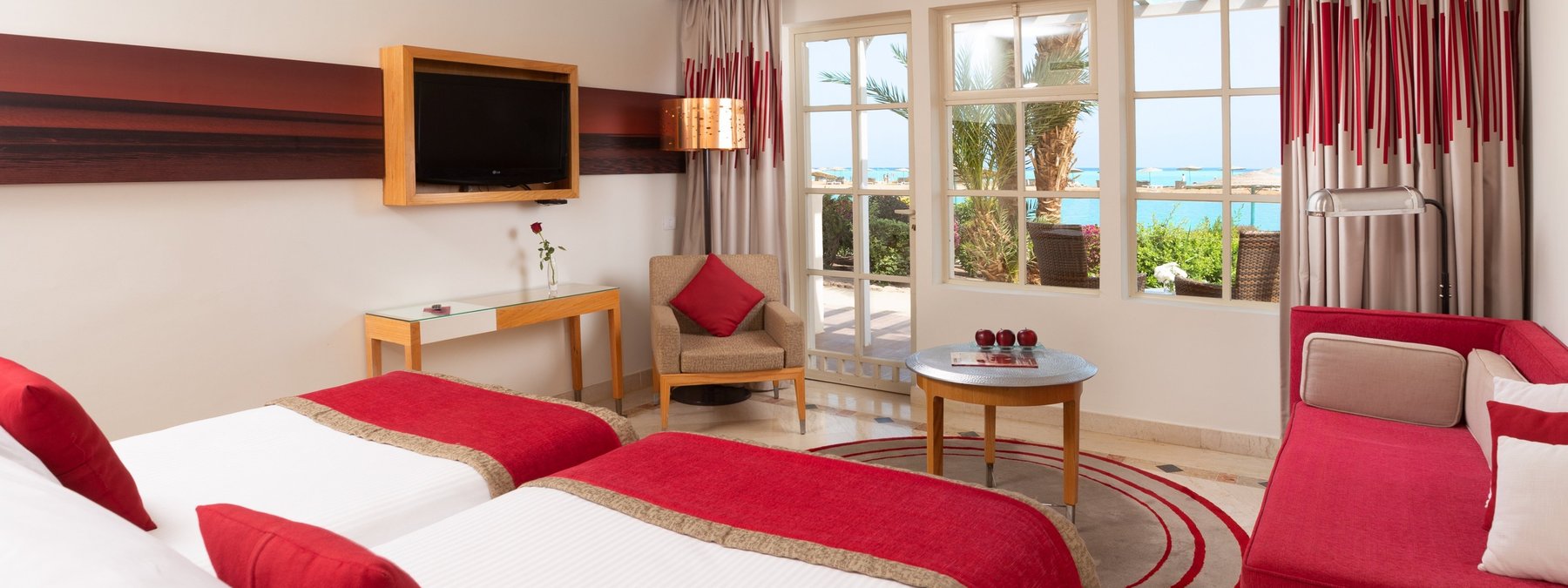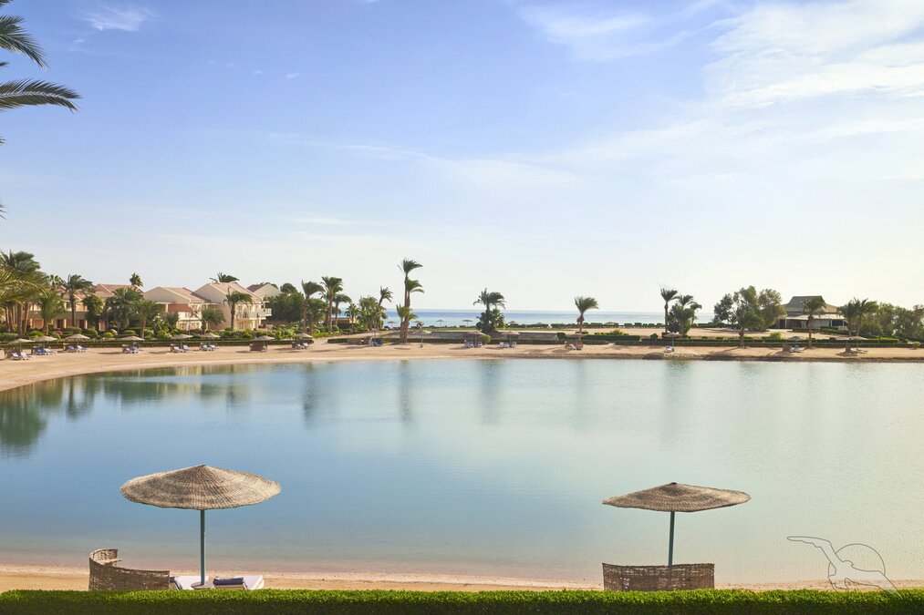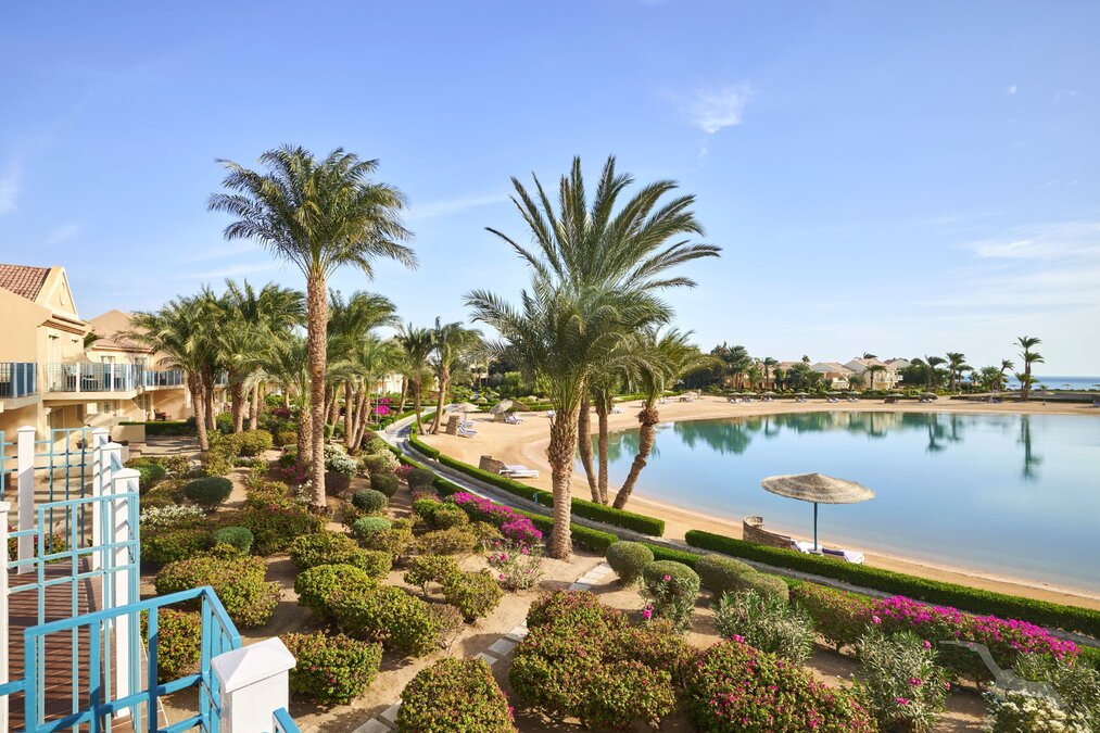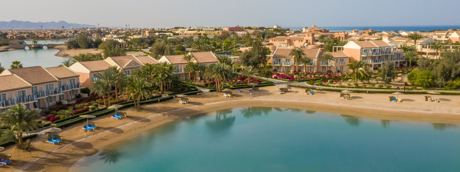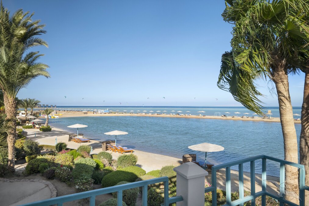 Direkt am Strand, umgeben von einer Lagunenlandschaft mit langen und flach abfallenden Stränden. Zum Ortszentrum von El Gouna sind es nur ca. 500 m, nach Hurghada ca. 30 km.